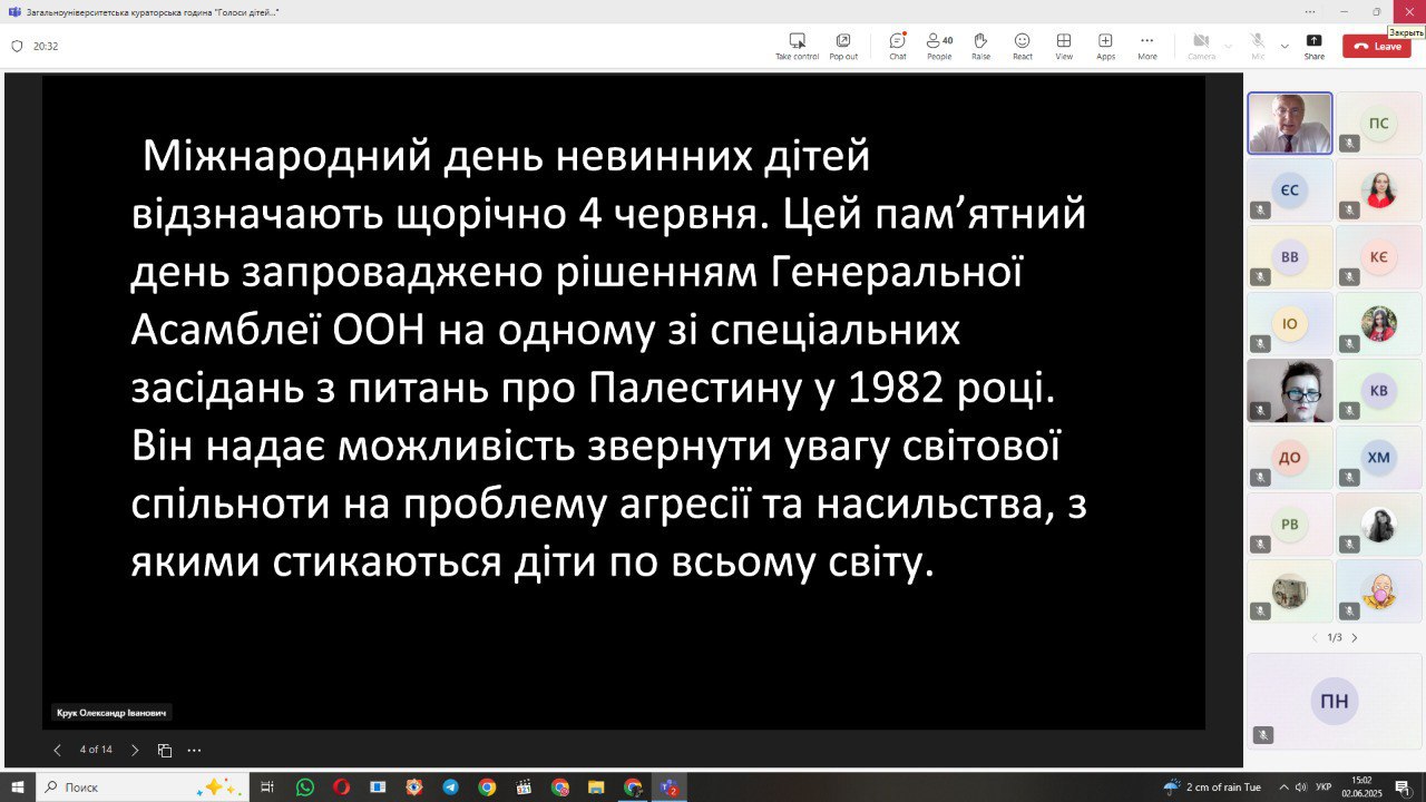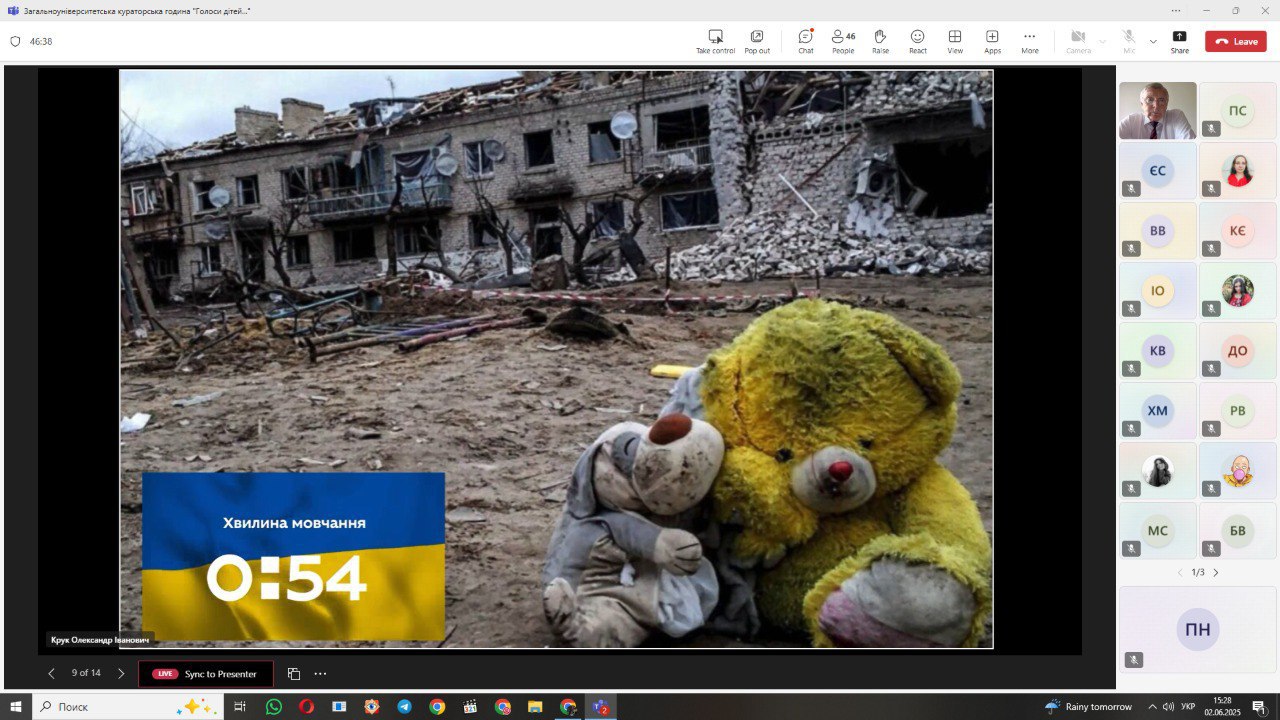 2 червня відбулася кураторська година в онлайн форматі, присвячена Дню вшанування пам’яті дітей, які загинули внаслідок збройної агресії росії.