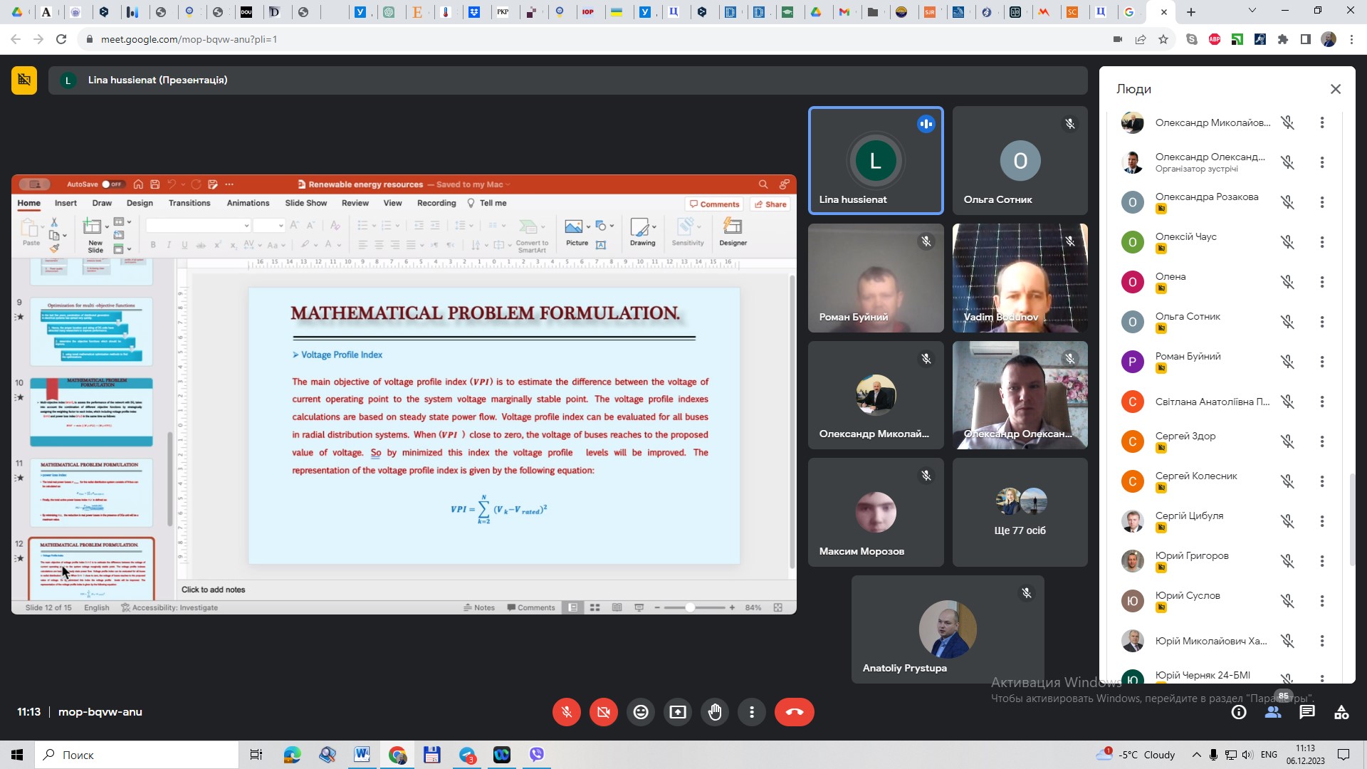 У рамках співпраці з кафедрою електропостачання та енергетичного менеджменту Державного біотехнологічного університету (м. Харків) та міжнародного співробітництва із Al-Balqa Applied University (Al Salt, Jordan) 6 грудня 2023 року здобувачі освітніх програм “Електроенергетика, електротехніка та електромеханіка” та “Метрологія та інформаційно-вимірювальна техніка” та науково-педагогічні працівники кафедри електричної інженерії та інформаційно-вимірювальних технологій НУ «Чернігівська політехніка» прослухали гостьову лекцію Dr. Mohamad Qawaqzeh та Lina H. Hussienat на тему “Optimization of distribution Networks Using Renewable Distributed Generation Units”.