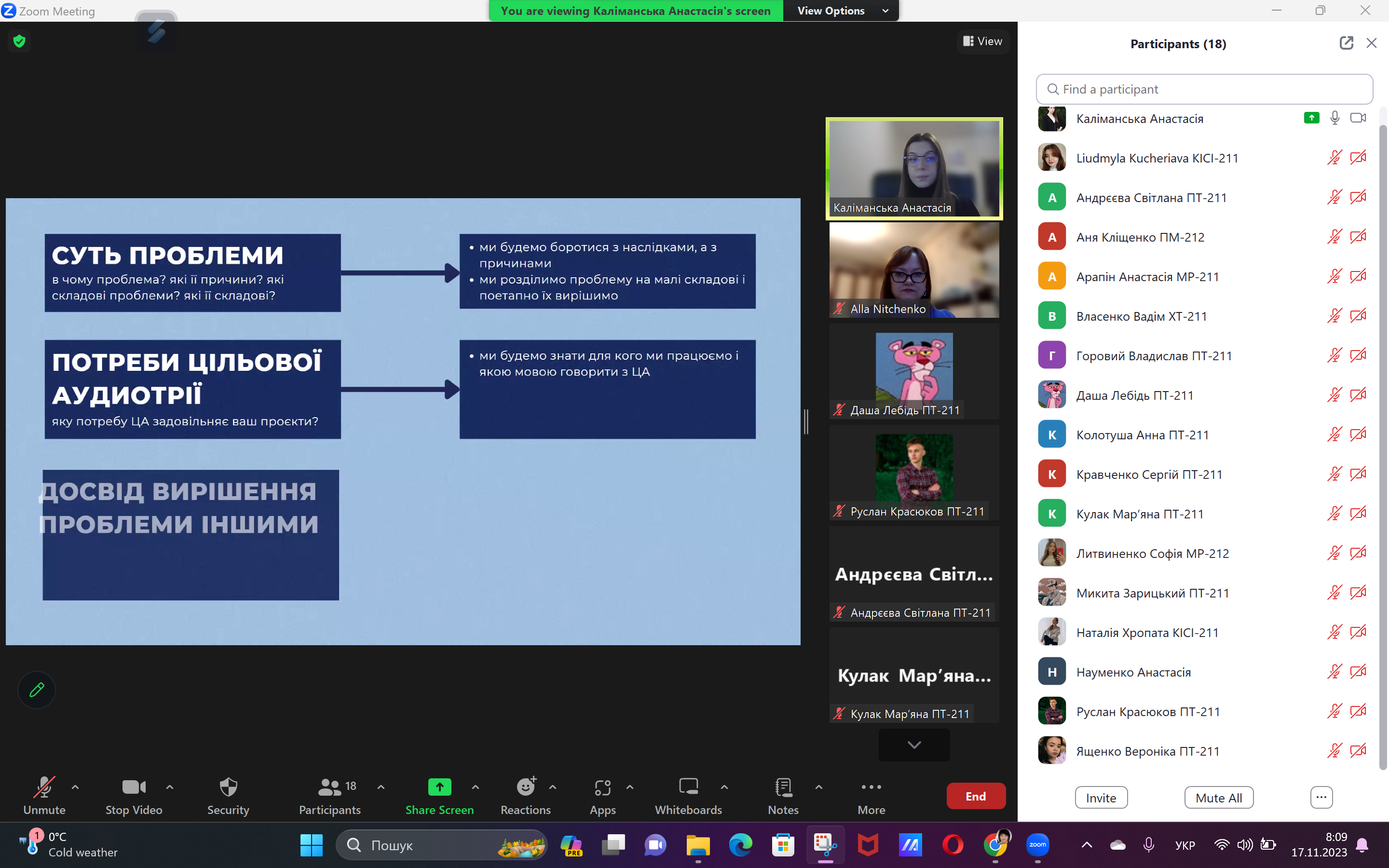Під час лекції здобувачи Навчально-наукового інституту бізнесу, природокористування і туризму, Навчально-наукового інституту права і соціальних технологій: факультету соціальних технологій, оздоровлення та реабілітації (викладачка – доцентка Олена КОЗИНЕЦЬ), Навчально-наукового інституту економіки, Навчально-наукового інституту менеджменту, харчових технологій та торгівлі (викладачка – доцентка Алла НІТЧЕНКО) мали можливість задати власні питання Анастасії КАЛІМАНСЬКІЙ та подискутувати щодо тем, які стосувалися дослідження проблем громади, аналізу ресурсів та продуктів.