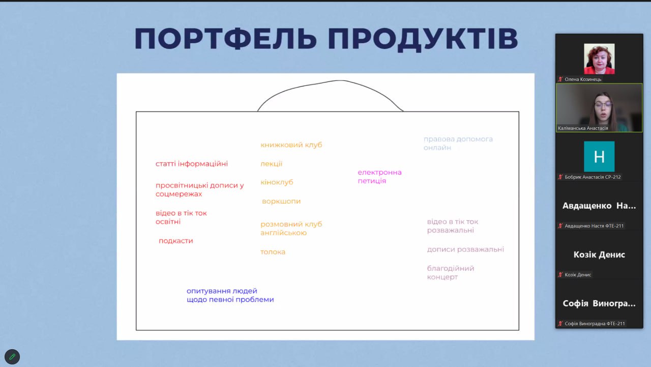Протягом двох тижнів (за розкладом ННІ) для здобувачів вищої освіти, які вивчають інтерактивний курс з громадянської освіти, було проведено навчальну лекцію з залученням менеджерки спільноти #dem_fam в ГО «ЙОДА» Анастасії КАЛІМАНСЬКОЇ.