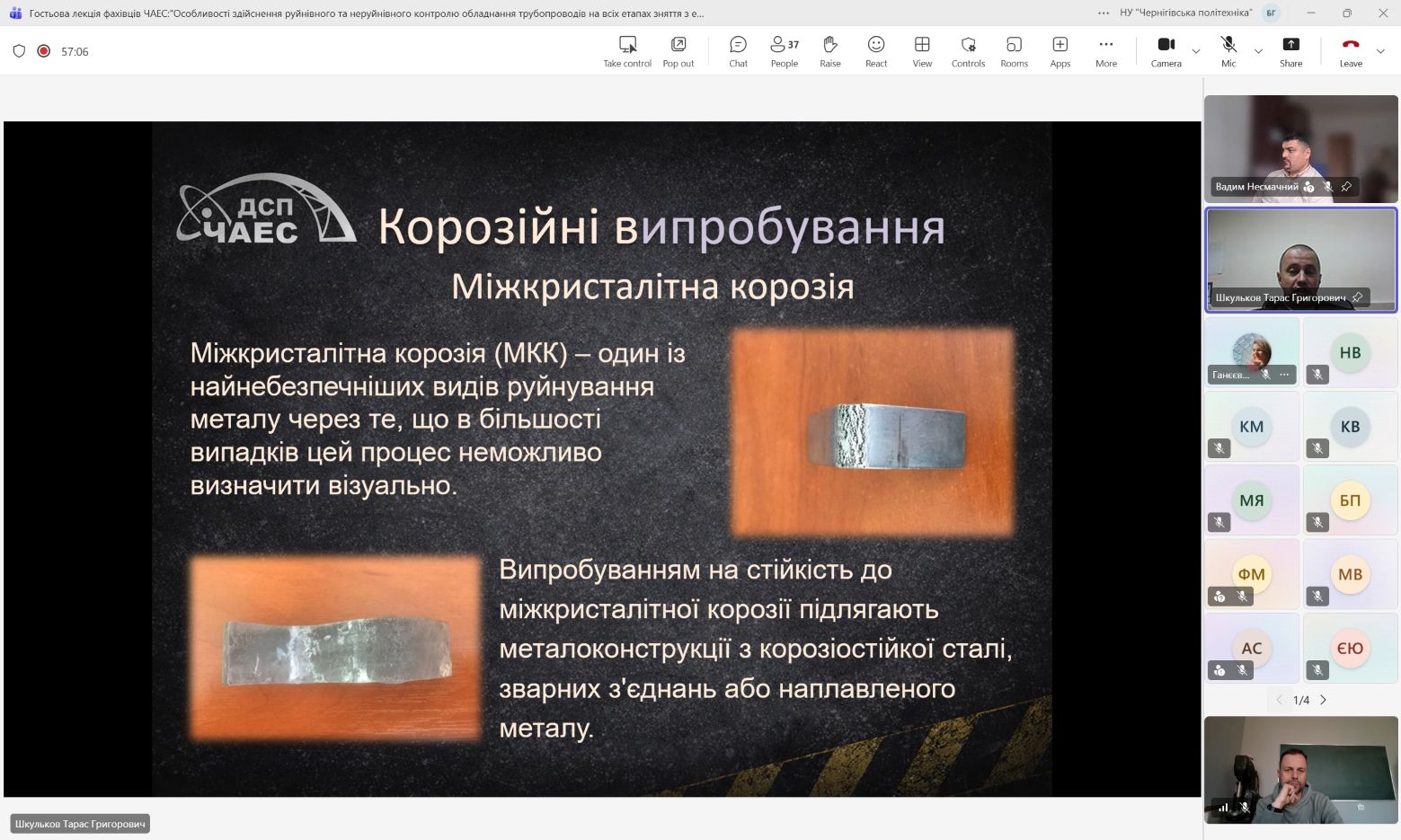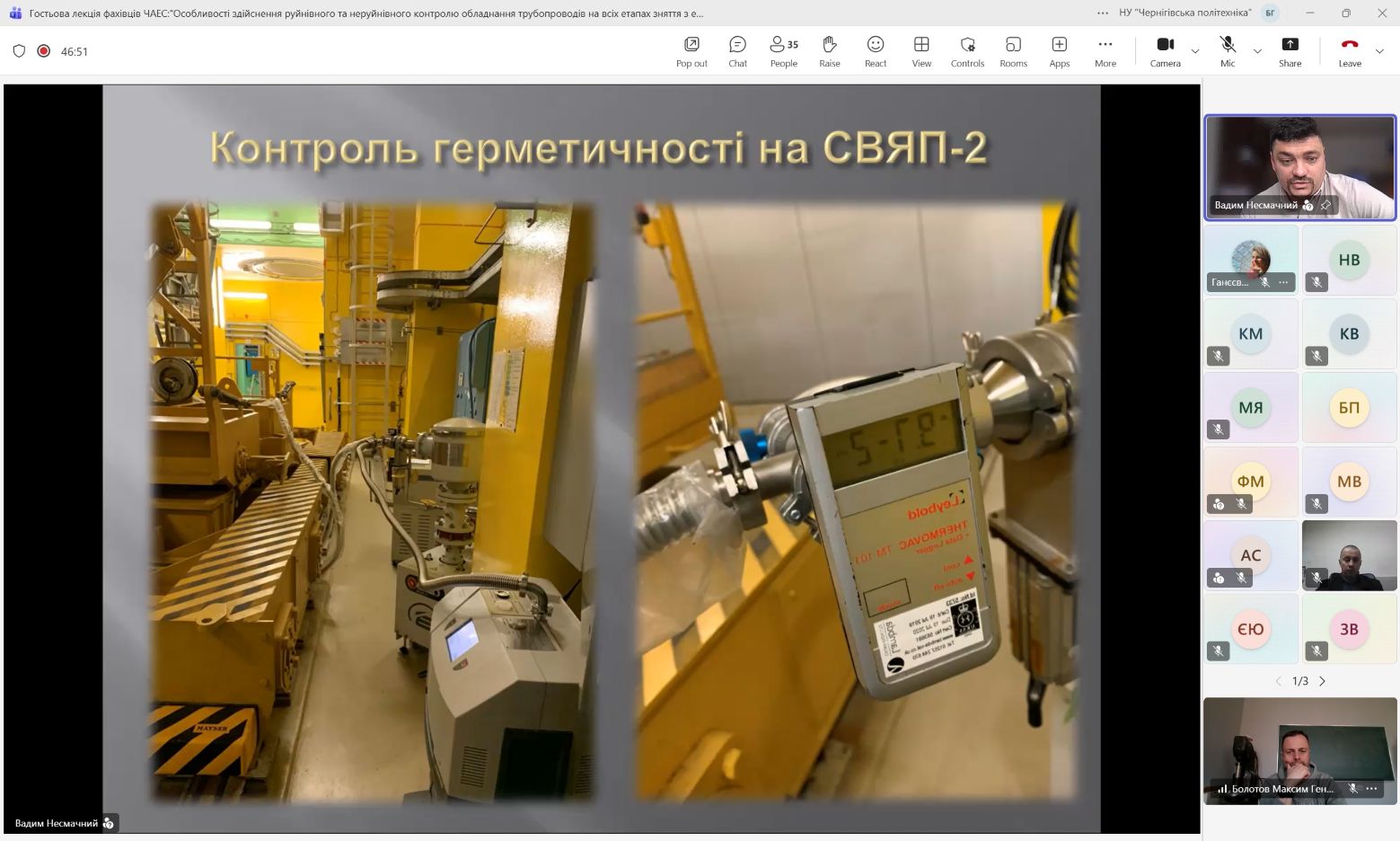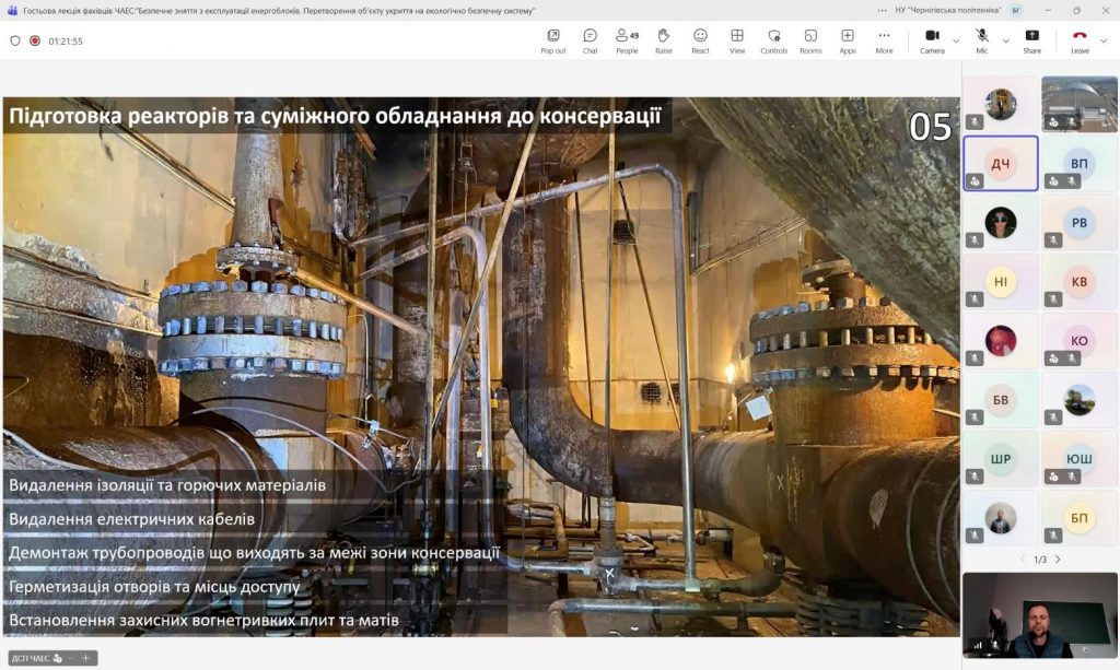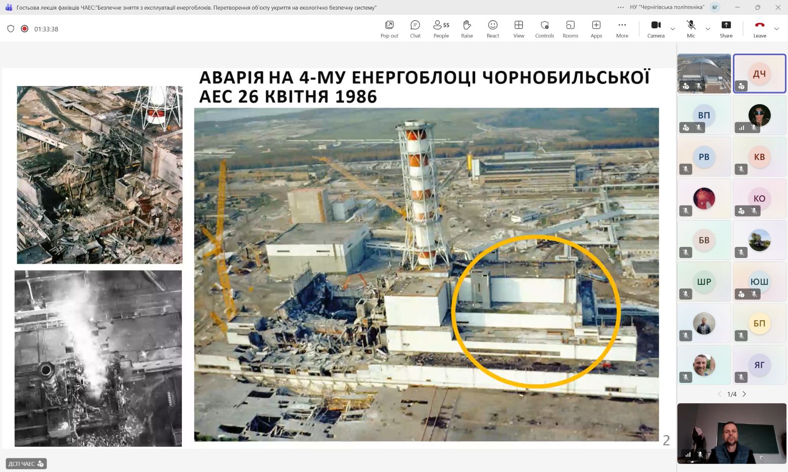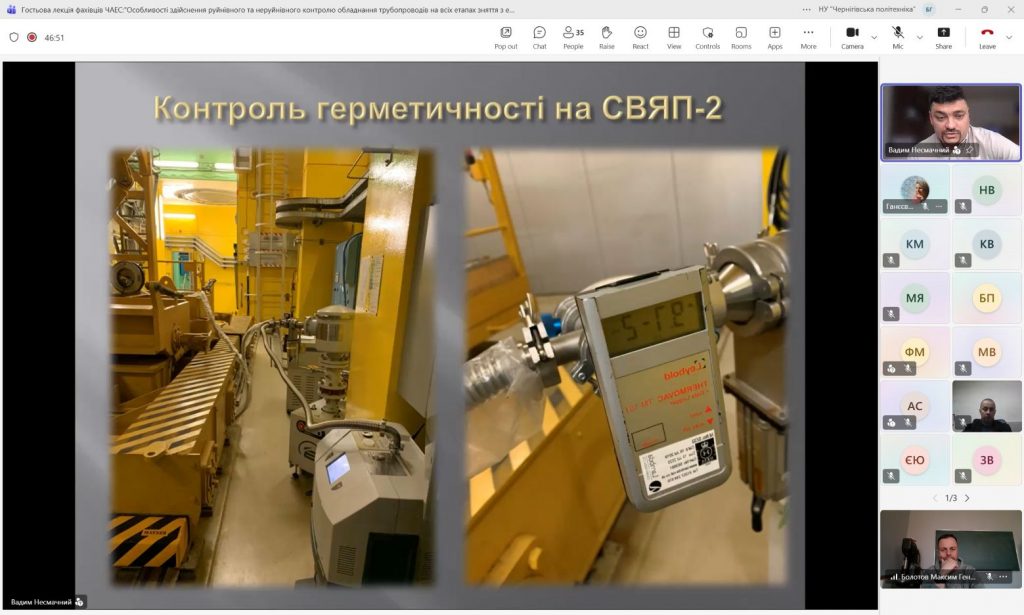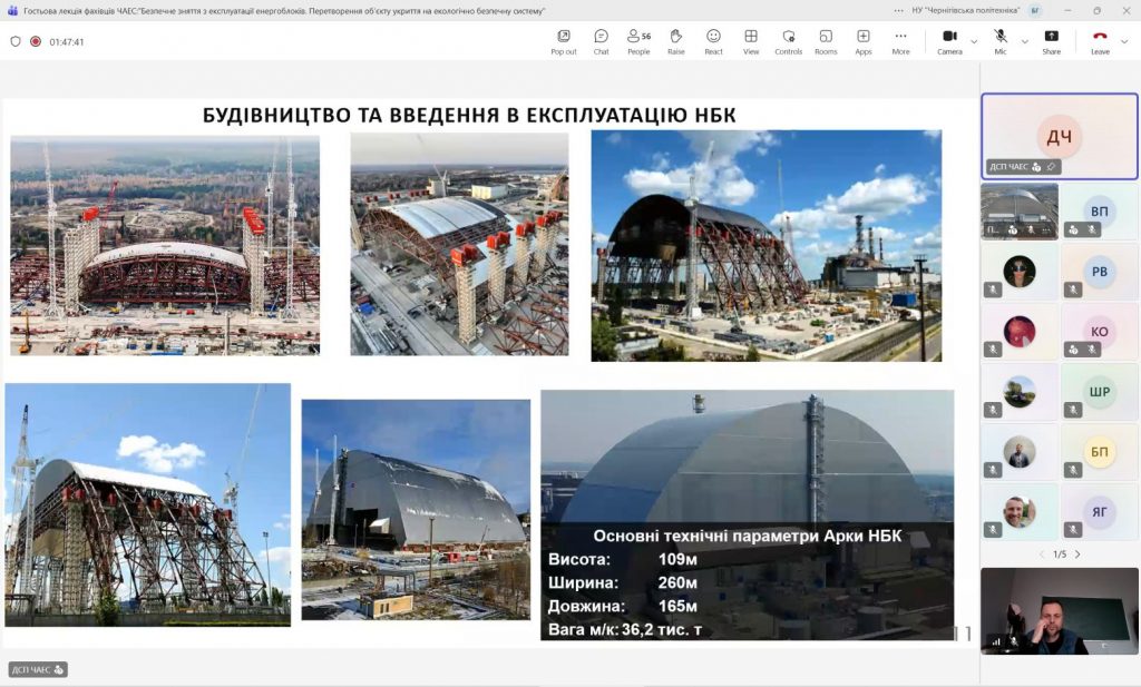 9 та 16 Квітня 2026 року на кафедрі технологій зварювання та будівництва фахівцями ДСП ЧАЕС в онлайн форматі було проведено дві гостьові лекції на теми: «Безпечне зняття з експлуатації енергоблоків. Перетворення об’єкту “Укриття” на екологічно безпечну систему» та «Особливості виконання руйнівного та неруйнівного контролю обладнання та трубопроводів на всіх етапах зняття з експлуатації ДСП ЧАЕС».