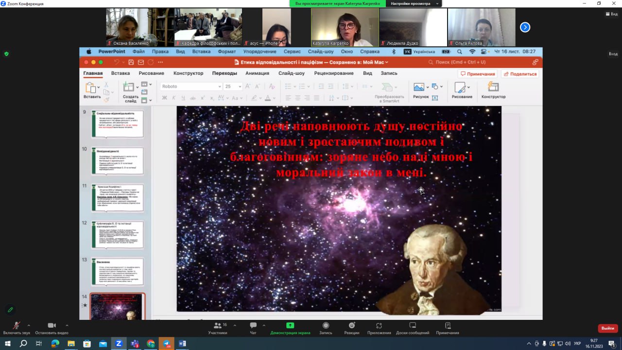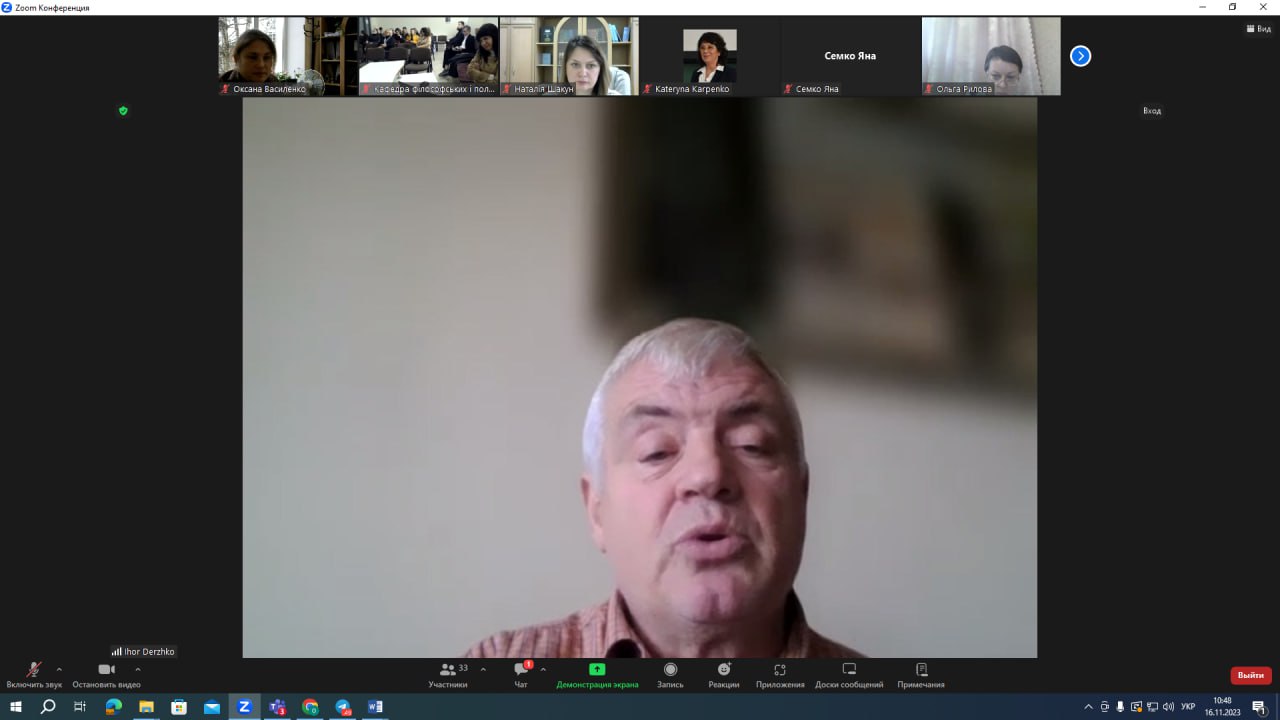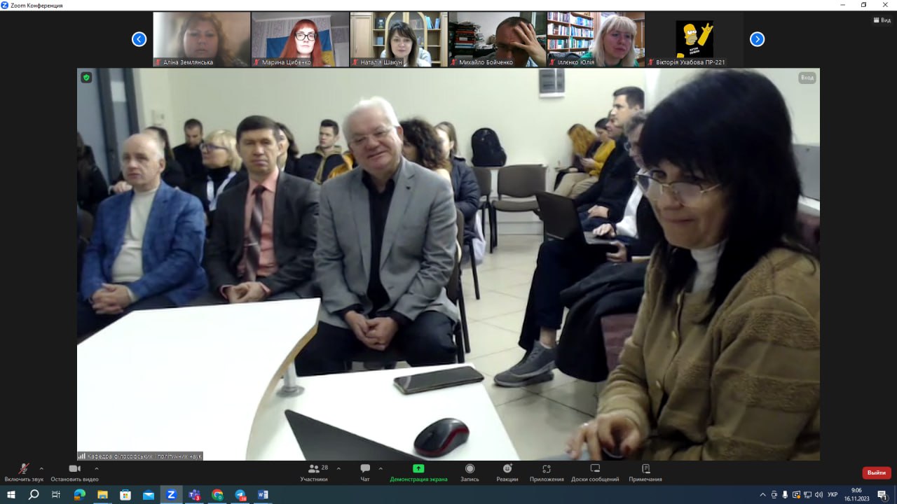 З вітальним словом до учасників заходу звернувся ректор ЧДТУ Олег Григор, закликавши учасників форуму до цікавих філософських дискусій. Модерувала захід завідувачка кафедри філософських і політичних наук ЧДТУ Анжела Бойко, цікаві та змістовні доповіді представили докторка філософських наук, професорка, завідувачка кафедри філософії та суспільних наук Харківського національного медичного університету Катерина Карпенко; кандидатка філософських наук, доцентка, доцентка кафедри мистецтвознавства та загальних дисциплін Міжнародного гуманітарного університету з Одеси Яна Семко; доктор філософських наук, професор, професор кафедри теоретичної та практичної філософії Київського національного університету імені Тараса Шевченка Михайло Бойченко; завідувач кафедри філософії та економіки Львівського національного медичного університету імені Данила Галицького Ігор Держко.