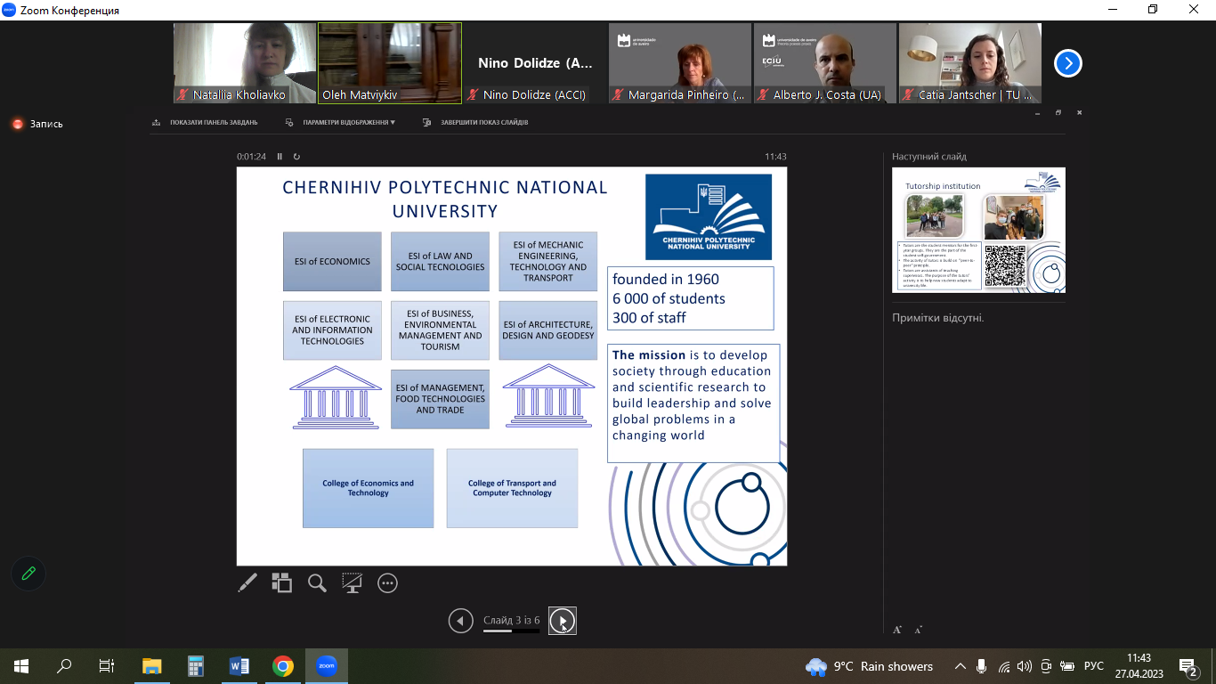 27 і 28 квітня 2023 року у м. Львові у Національному університеті “Львівська політехніка” відбувалась установча зустріч партнерів (kick-off meeting) у рамках Проєкту міжнародної технічної допомоги Європейського Союзу Еразмус+ “Сприяння професійній освіті та активній участі студентів через становлення комплексної системи менторства та тьюторства у ЗВО” (“Promoting professional education and students engagement through comprehensive mentoring and tutoring system in HEIs”).