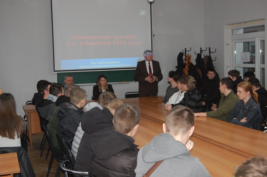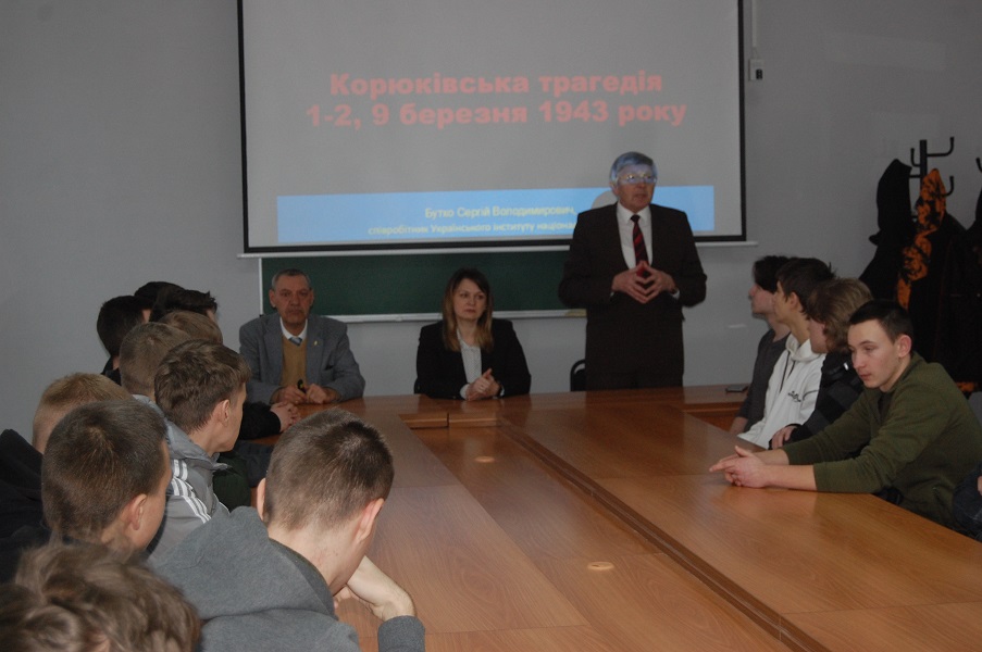 - С.В. Бутко, представник Інституту національної пам’яті по Чернігівській області – «Корюківська трагедія – національний символ скорботи України».