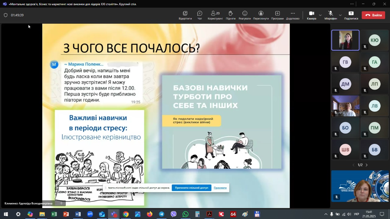 - Філіпович Вікторія Миколаївна, керівник Психологічної служби університету, керівник Центру ментального здоров’я університету, кандидат психологічних наук, доцент кафедри ПКІ – зауважила, що тема ментального здоров’я наразі виходить за рамки лише психологічної допомоги, а і стає актуальною у сфері бізнесу, адже емоційний інтелект, комунікативна компетентність є важливими навичками сучасного керівника і фахівця;