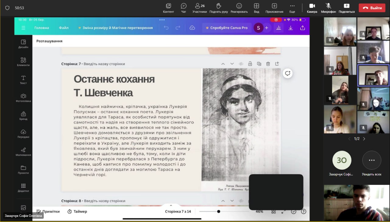 Щороку в березні Україна і світ вшановує видатного поета, прозаїка, художника та громадського діяча Тараса Григоровича Шевченка. Протягом традиційної декади «Шевченківська весна в НУ «Чернігівська політехніка» здобувачі освіти, вшановуючи пам’ять генія, долучилися до круглого столу “Невідомий Шевченко”.