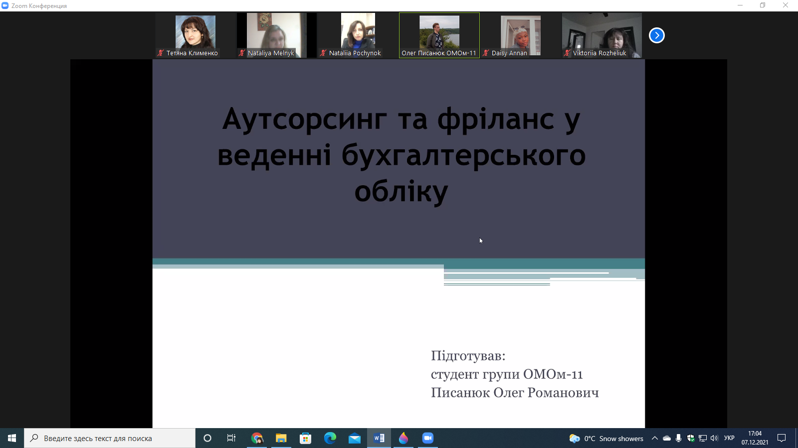 Здобувачі вищої освіти – представники України презентували дослідження щодо вітчизняних особливостей аутсорсингу та фрілансу у веденні бухгалтерського обліку.