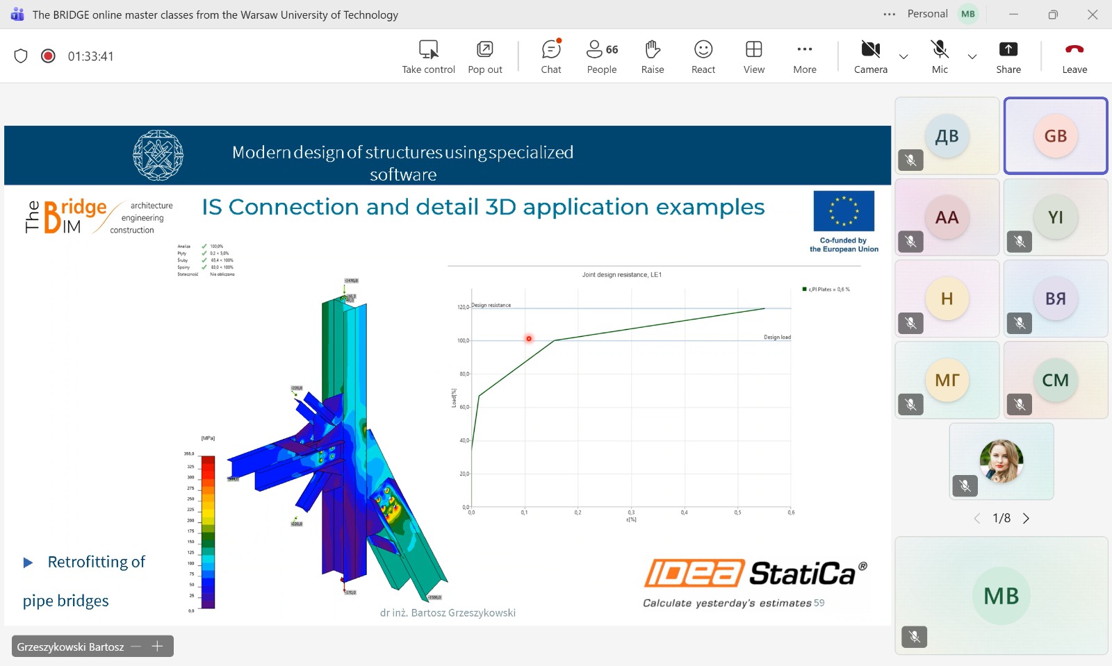 11 та 15 грудня 2025 року викладачі та здобувачі кафедри технологій зварювання та будівництва мали змогу взяти участь у спеціалізованих майстеркласах від викладачів Варшавського політехнічного університету (Польща) та КНУБА (Україна) – «The BRIDGE online master classes from the Warsaw University of Technology».