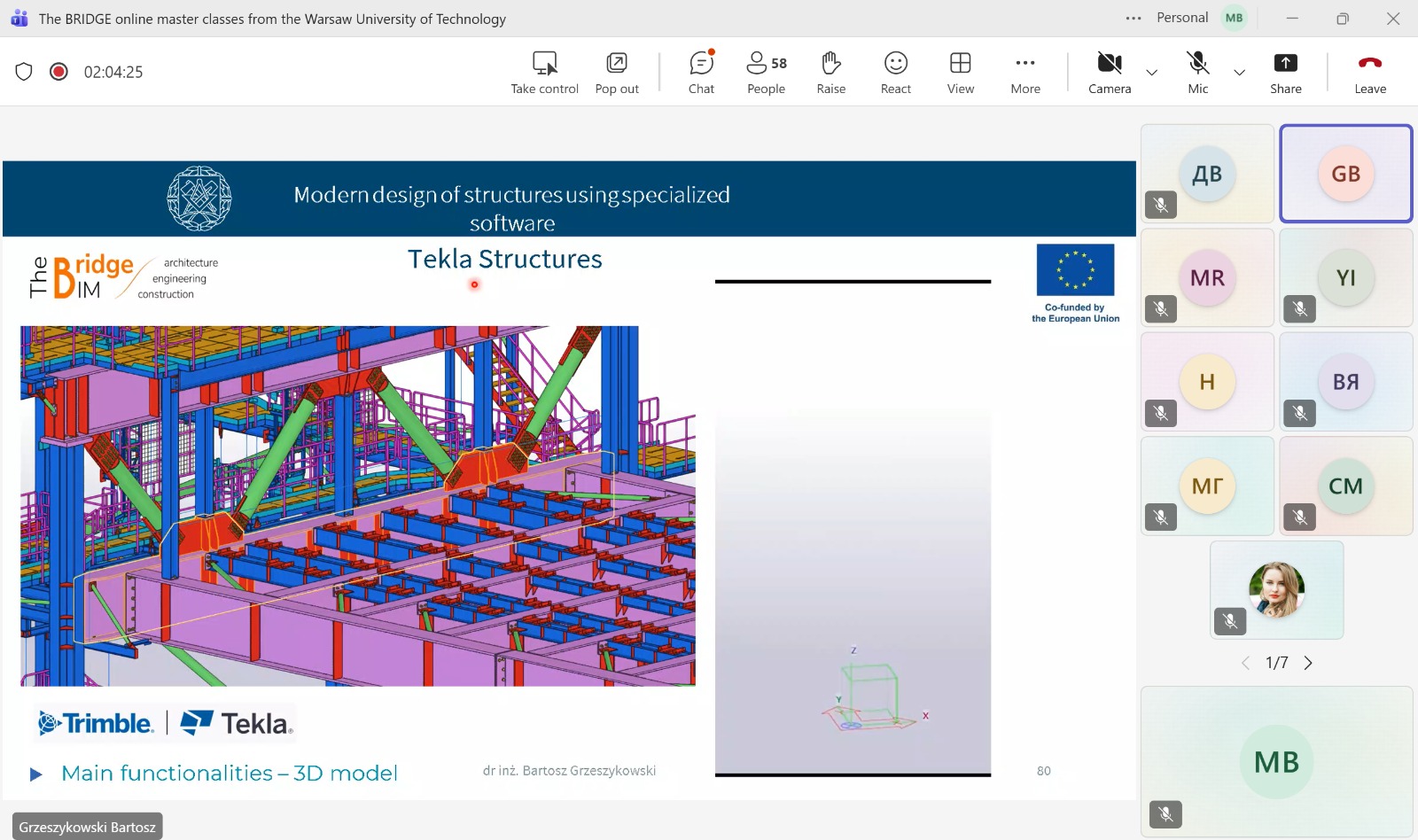 Цей захід проходив в рамках проєкту The BRIDGE, що співфінансується ЄС та об’єднує досвід університетів України і Європейського Союзу і є першим з чотирьох сесій майстеркласів. Загалом провідні експерти і викладачі з Польщі, Німеччини, Словаччини, Італії та України проведуть серію інноваційних, креативних та міждисциплінарних майстер-класів для викладачів, студентів, випускників, роботодавців та інших зацікавлених сторін на теми, пов’язані з BIM-технологіями.