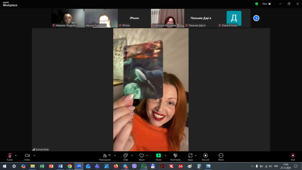Кожна відповідь відкривала нові грані творчого та професійного процесу, демонструючи, що робота з метафоричними картами — це не лише техніка, а й окремий шлях розвитку.