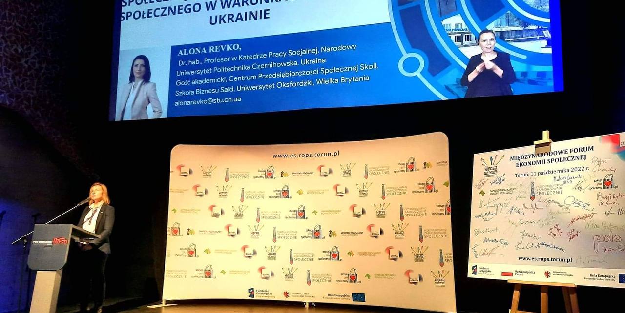 11 вересня 2022 року докторка економічних наук, професорка кафедри соціальної роботи НУ “Чернігівська політехніка” Ревко А.М. прийняла участь, у якості гостя спеціального, у Міжнародному форумі з соціальної економіки у м. Торунь, Польща.