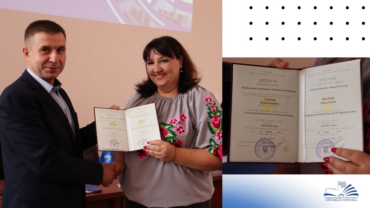 На засіданні також було вручено атестат професора Шишкіній Олені Вікторівні (кафедра фінансів, банківської справи та страхування). Відзначено її видатні наукові досягнення та вагомий внесок у розвиток навчального процесу. А також вручено диплом доктора економічних наук Харченко Юлії Петрівні.
