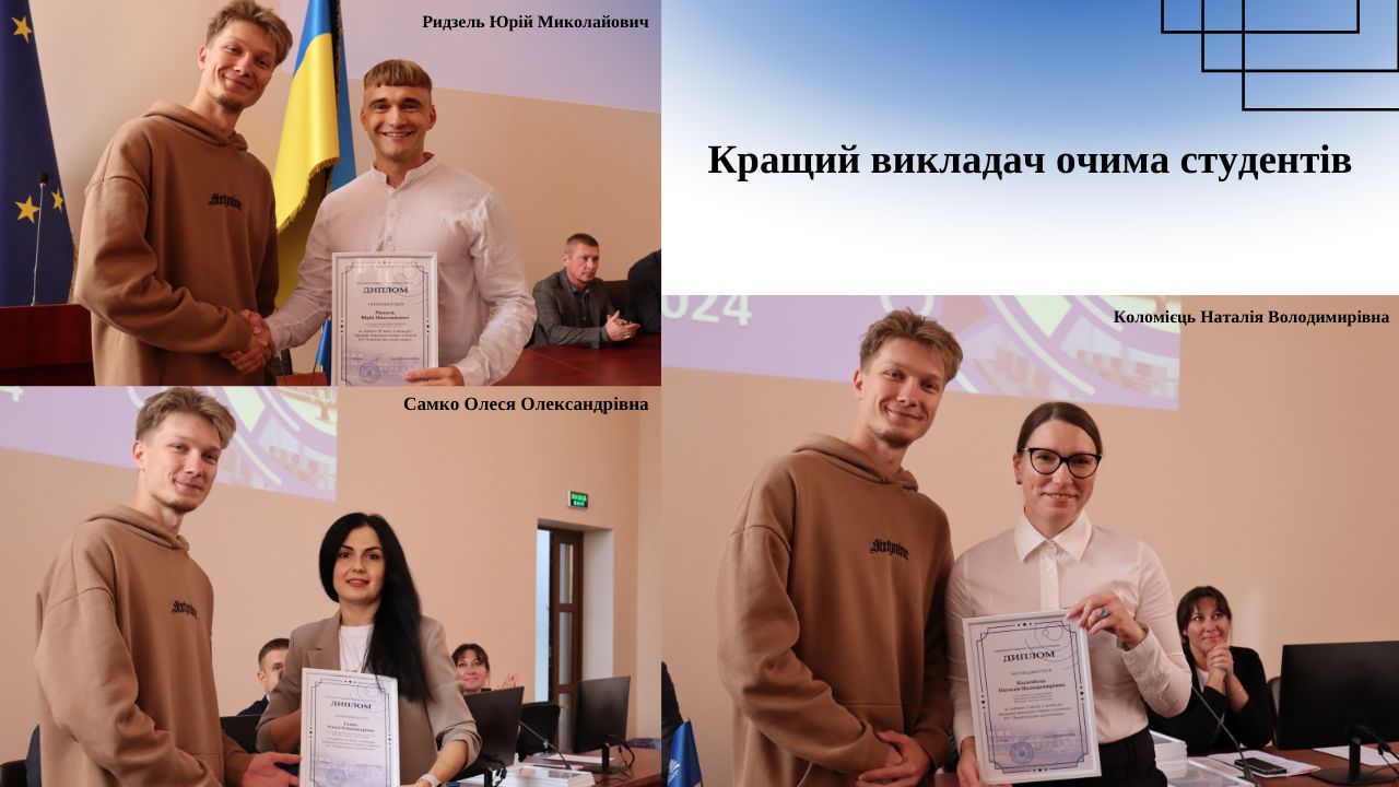 3 місце – Ридзель Юрій, викладач, якого студенти називають справжнім майстром спрощення складного. Його вміння робити навчання цікавим та зрозумілим здобуло серед студентів щиру повагу та визнання.