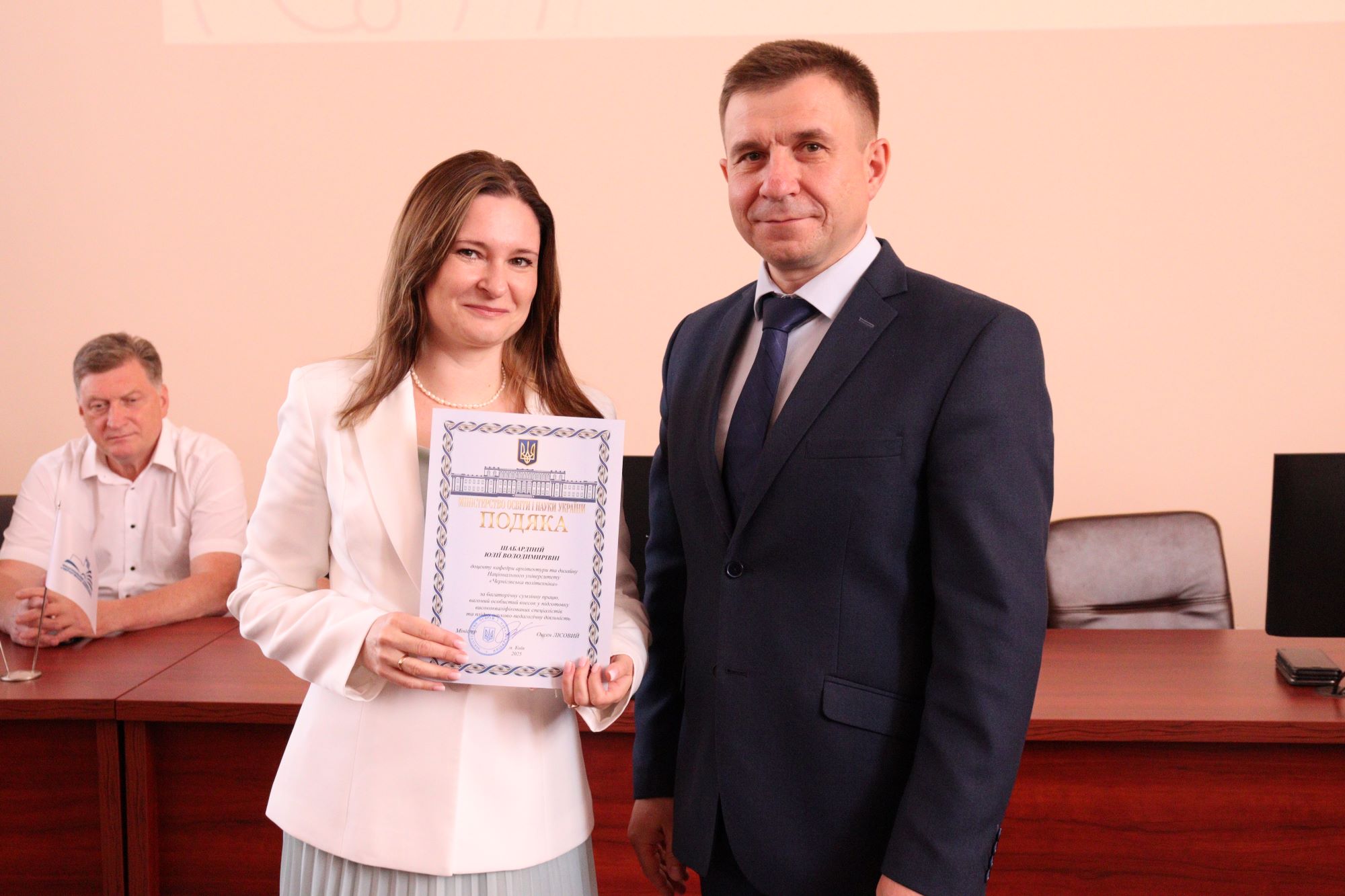 За ініціативу та наполегливість, високий професіоналізм, сумлінне виконання службових обов’язків та вагомий особистий внесок у розвиток сфери освіти і науки України подяку видано: