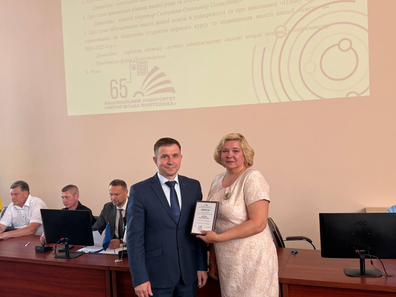 Під час чергового засідання Вченої ради відбулося урочисте нагородження працівників Національного університету «Чернігівська політехніка» з нагоди 65-ї річниці від його заснування.
