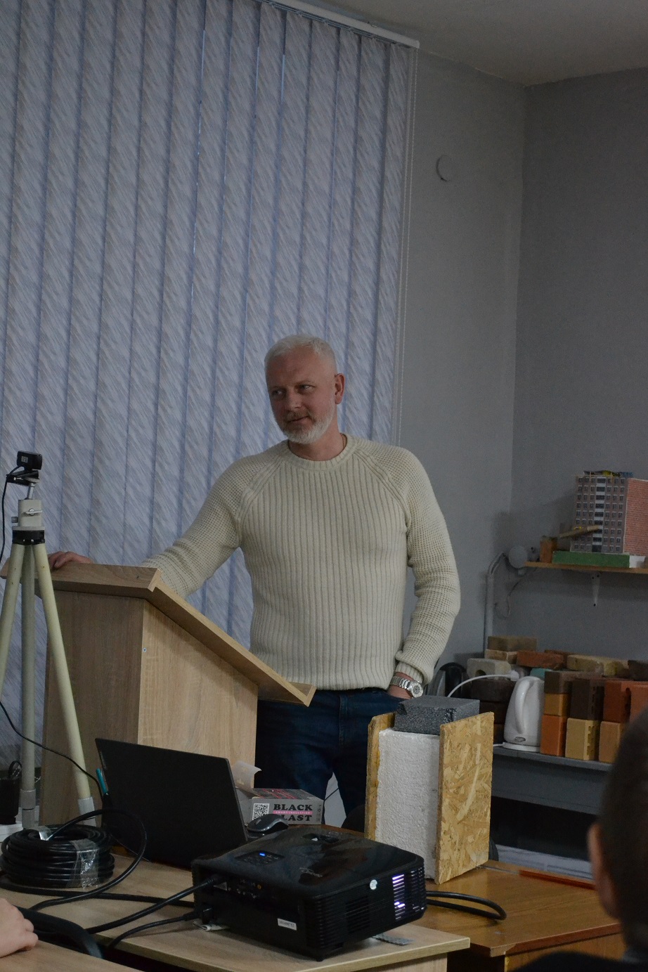 Стейкхолдер НУ «Чернігівська політехніка» Філіпович Віктор Михайлович поділився практичним досвідом з модернізації та утеплення будівель і споруд. А доповідь на тему «Передові системи термомодернізації будівель і споруд», в рамках короткострокової навчальної програми у сфері енергоефективності та енергозбереження «Сучасні системи термомодернізації будівель і споруд», супроводжувалася демонстрацією зразків утеплювачів.