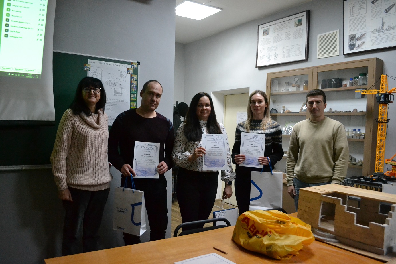 Також під час проведення заходу було відзначено здобувачів вищої освіти, що займаються науково-дослідними роботами: нагороджено Подяками ректора НУ «Чернігівська політехніка» здобувача гр. МБА-232 Лужецького Р.В. за НДР «Геотехнічний моніторинг об’єктів пошкоджених військовими діями», наукові керівники: к.т.н. Корзаченко М.М., к.т.н. Прибитько І.О.; здобувача гр. МБА-232 Хоменко О.В. за НДР «Особливості проектування споруд цивільного захисту з урахуванням змін нормативних документів», наукові керівники: к.т.н. Ганєєв Т.Р., Корзаченко М.М. та відзначено грамотами здобувачів гр. МБА-232 Дергунова Ю.А., та Стрілець І.В. Роботи проведені в рамках наукового гуртка «Будівельна механіка та розрахунок будівель і споруд – від древніх зодчих до сьогодення».