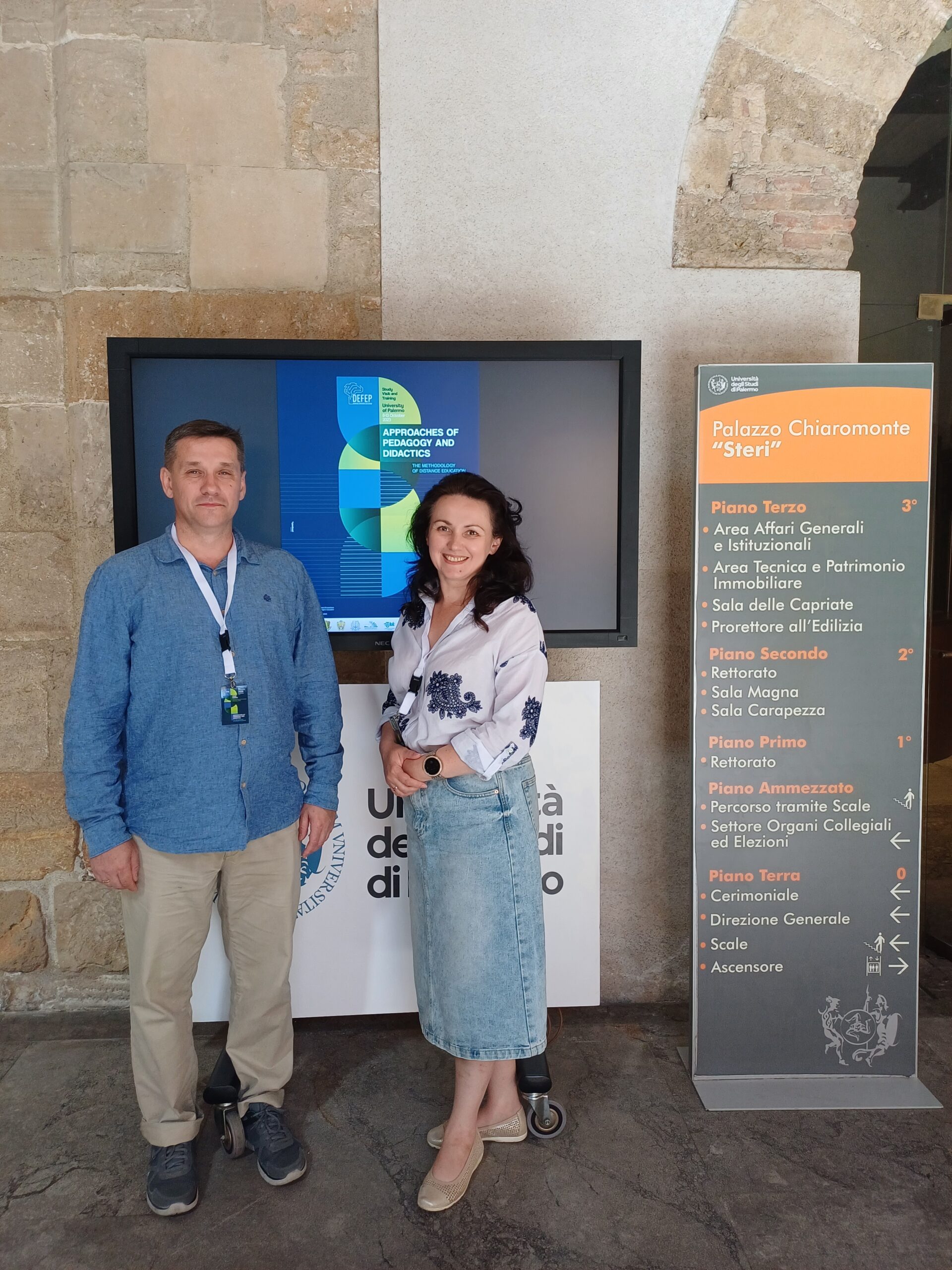 9 жовтня 2023 року в Університеті Палермо (Італія) розпочався навчальний візит і цикл тренінгів з тематики «Approaches of Рedagogy and Didactics» у рамках проєкту DEFEP Erasmus+ KA2 «Дистанційна освіта для майбутнього: кращі практики ЄС у відповідь на запити здобувачів вищої освіти та ринку праці» («Distance Education for Future: best EU practices in response to the requests of modern higher education seekers and labor market»).