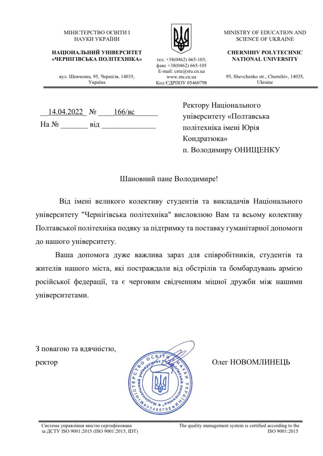 Присвоєно звання «Почесний доктор Національного університету «Чернігівська політехніка»»