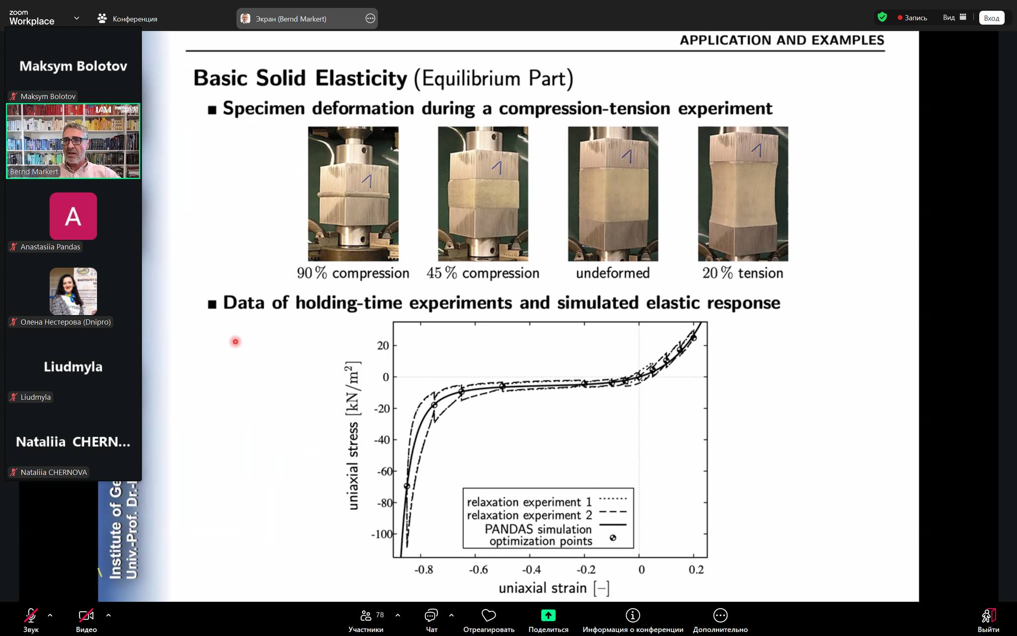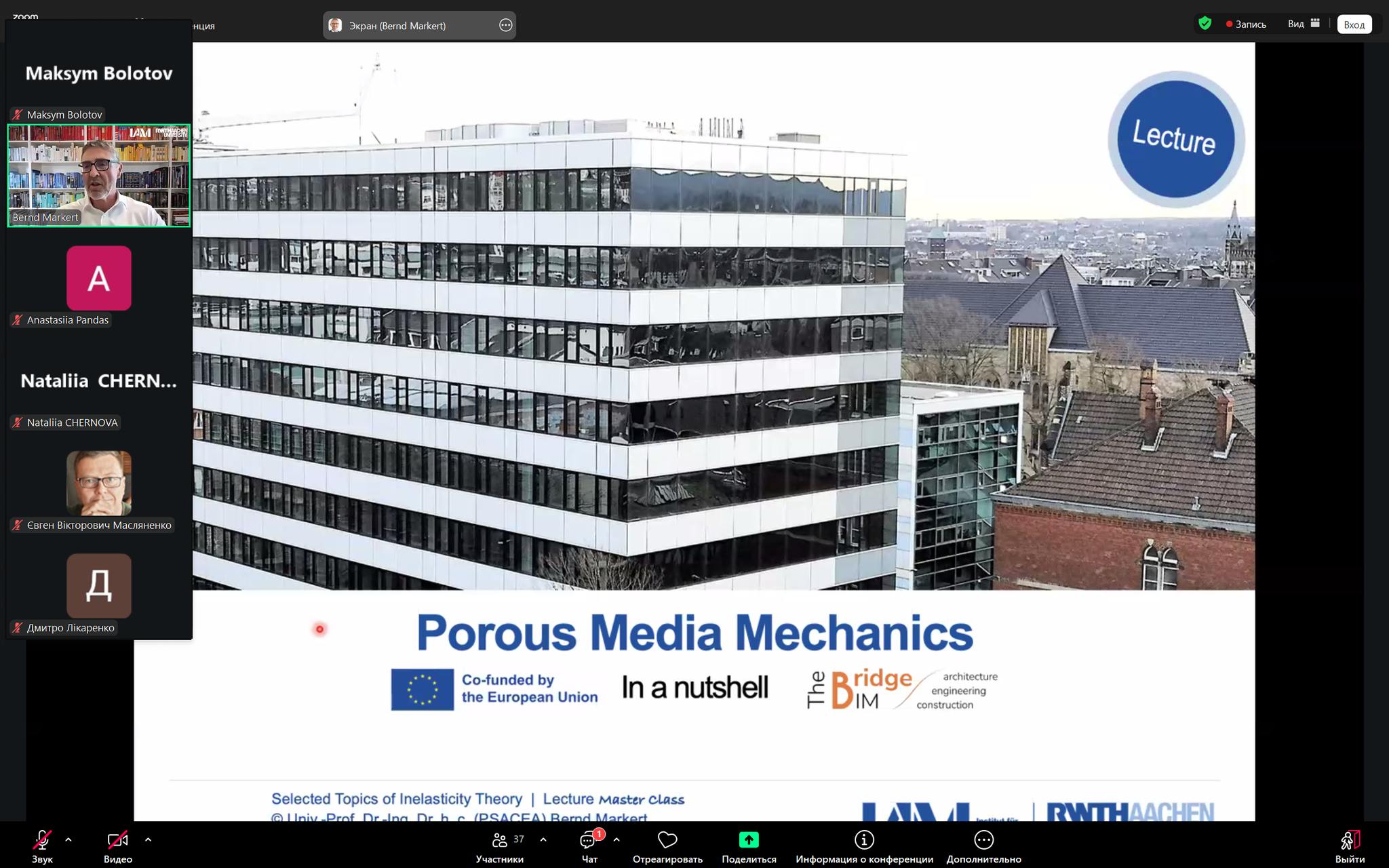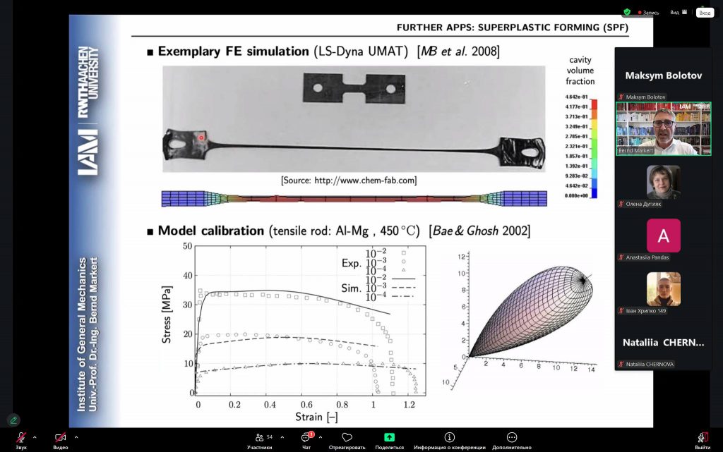 Так, лекційну частину програми було представлено директором Інституту загальної механіки, професором д.-інж. Bernd Markert. У межах своїх виступів він висвітлив ключові аспекти курсів «Механіка пористих матеріалів» та «Деякі питання теорії непружності», акцентуючи увагу на сучасних наукових підходах і їх прикладному значенні у будівельній та машинобудівній галузях.
