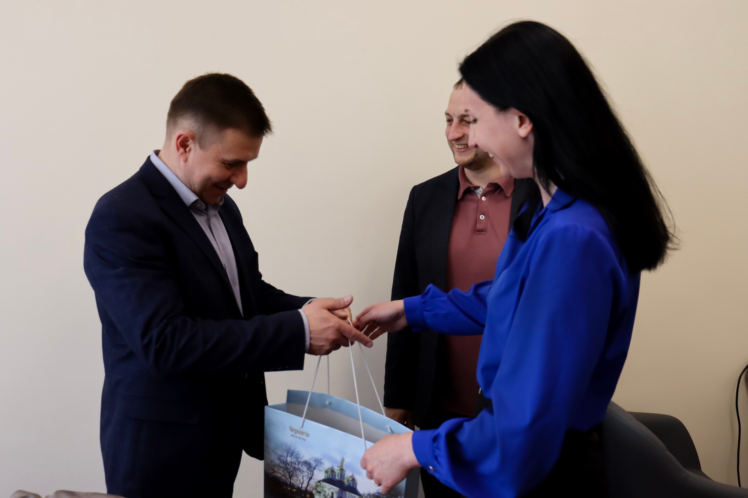 З візитом до Чернігівської політехніки завітали Олександр Засідка — керівник групи відділень ПУМБ, а також Ірина Леонідівна Індач — керуюча відділенням №1 ПУМБ у місті Чернігів. Гості висловили щирі слова вдячності за плідну співпрацю, а також вручили університету символічний подарунок до ювілейної дати.