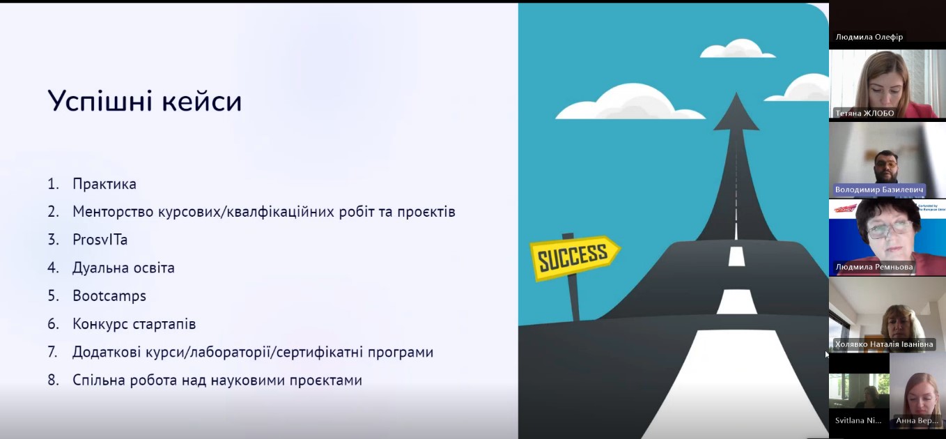 Керівниця Центру тьюторства та менторства НУ «Чернігівська політехніка» Алла Холодницька зупинилася на ролі та основних функціях очолюваного нею центру у формуванні пулу менторів та ефективній реалізації менторських програм, а також презентували наявні форми співпраці з роботодавцями у цьому напрямку.