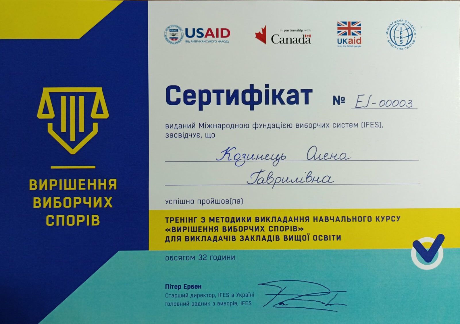 Так у навчальний процес здобувачів вищої освіти ОП «Правоохоронна діяльність» буде запроваджено інноваційний та інтерактивний курс із вирішення виборчих спорів, який реалізовується за партнерської підтримки IFES (Міжнародна фундація виборчих систем), USAID Ukraine – USAID Україна, Міністерства міжнародних справ Канади (Embassy of Canada to Ukraine Canada’s International Development – Global Affairs Canada) та британської допомоги від уряду Великої Британії (British Embassy Kyiv). Вивчення нової навчальної дисципліни буде сприяти набуттю нових та поглибленню здобутих під час навчання теоретичних знань, формуванню практичних вмінь і навичок щодо ефективного вирішення виборчих спорів відповідно до принципів права, кращих міжнародних практик та з урахуванням специфіки національного законодавства.