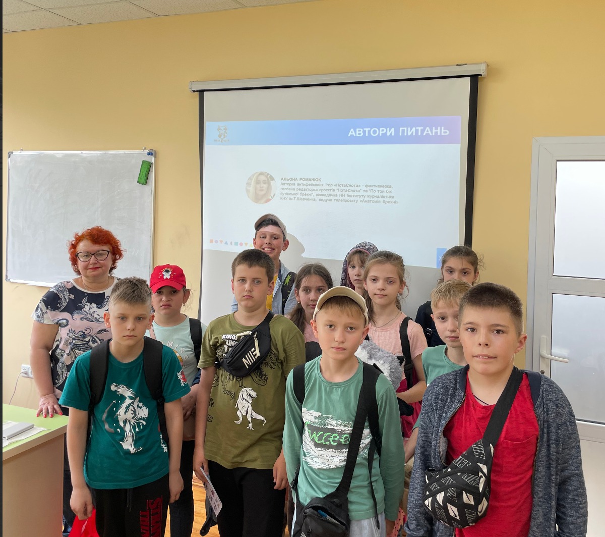 2. Антифейкова інтелектуальна гра «НотаЄнота» (розробниця гри – Альона Романюк). Дана гра спрямована на формування в учнів критичного мислення та навичок медіаграмотності. Проводила захід завідувач кафедри правоохоронної діяльності та загальноправових дисциплін Олена Козинець. Граючи в антифейкову інтелектуальну гру «НотаЄнота», учасники пришкільного табору рятували Єнота з пропагандистського полону. Діти вчилися критично мислити на основі реальних кейсів та відрізняти правду від брехні, отримали практичні поради як не стати жертвою інтернет-шахраїв. Операція по звільненню Єнота пройшла успішно! Матеріали для проведення ігор надані ГО «Центр аналізу інформації «Лакмус» за підтримки Фонду «Партнерство задля стійкості України».