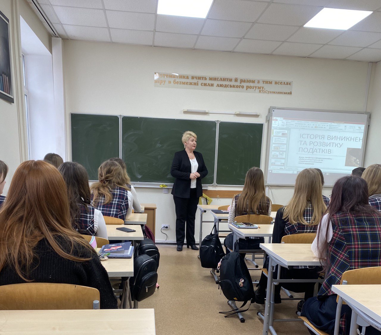 1 лютого 2024 року д.е.н., професор кафедри економіки, обліку та оподаткування Акименко О.Ю. провела урок на тему «Історія виникнення та розвитку податків» для учнів класу суспільно-гуманітарного профілю економіко-правової галузі знань Чернігівського обласного наукового ліцею.