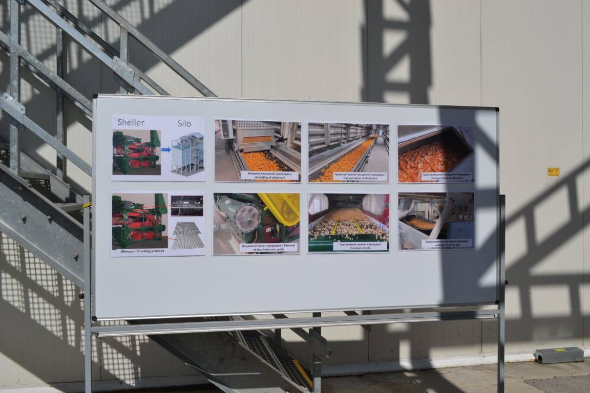 Екскурсія по заводу почалась з лабораторії, де начальник відділу розповіла про всі етапи оцінки якості насіння і його фізіологічних показників. Наступний етап екскурсії відбувався вже на території заводу та безпосередньо у виробничих цехах. Екскурсантів ознайомили зі всіма етапами виробничого процесу: від завезення качанів кукурудзи з поля до калібрування і пакування насіння.