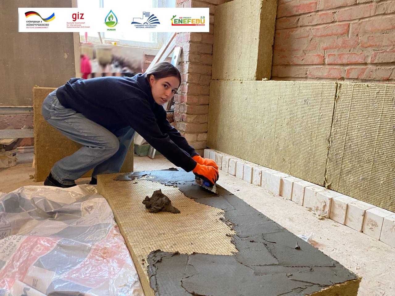 08 лютого в рамках практичної підготовки короткострокових курсів «Передові системи термомодернізації будівель і споруд» учасники продовжили практичну підготовку з монтажу системи теплоізоляції фасадів з тонким штукатурним шаром.