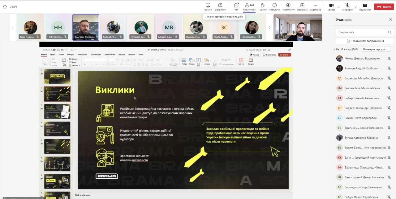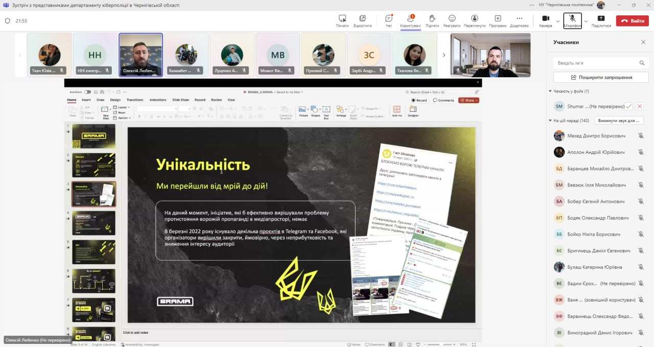 Під час зустрічі наші гості висвітлили проект “Брама”, який спрямований на захист медіапростору від російської пропаганди, блокування каналів поширення дезінформації, протиправного та забороненого контенту. Це надзвичайно актуальна і важлива тема, яка безпосередньо стосується кожного з нас у цей непростий час.
