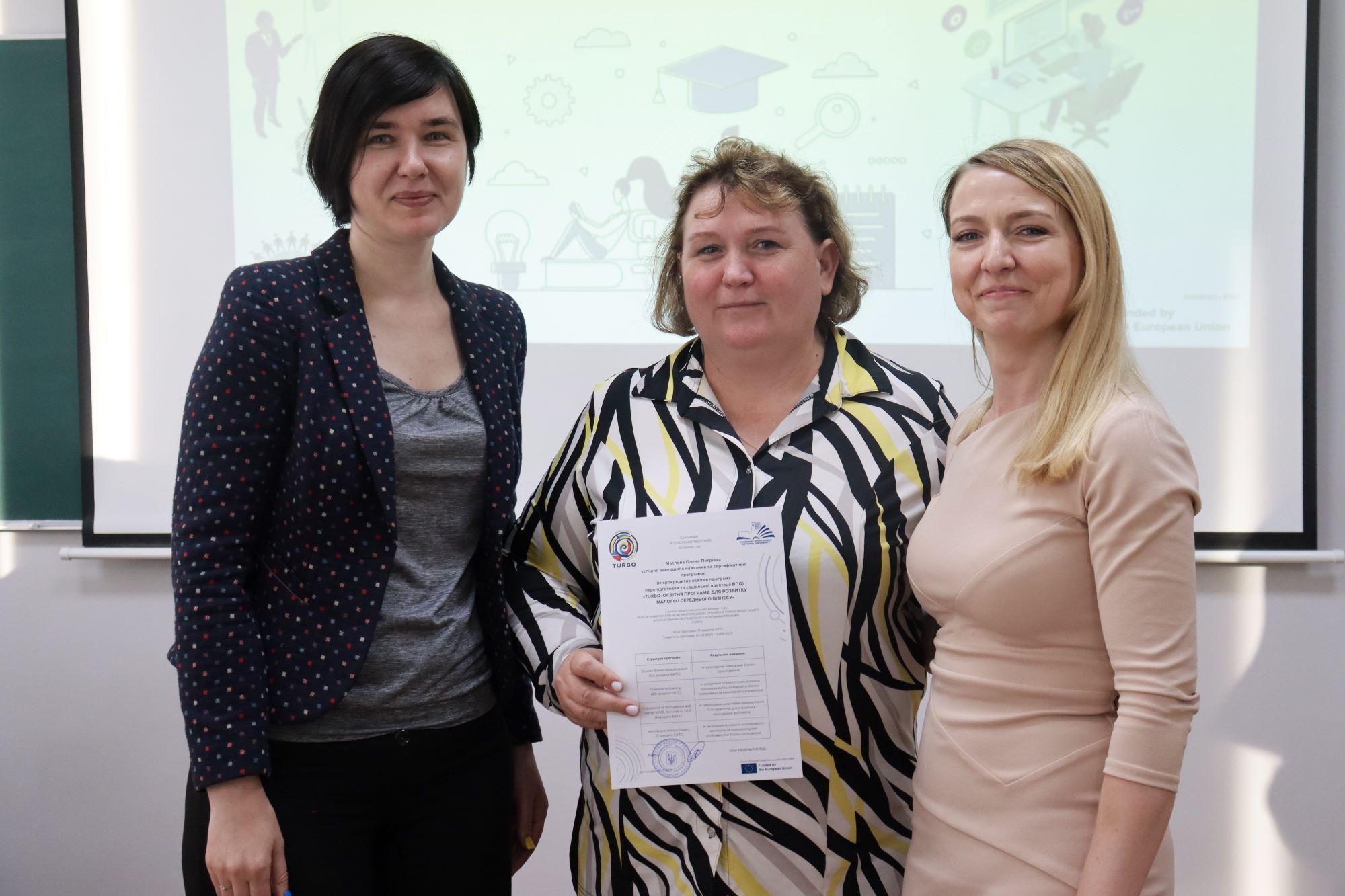 Результати навчання за мікрокредитною освітньою програмою перепідготовки та соціальної адаптації внутрішньо переміщених осіб у рамках проєкту «TURBO»: пітчинг бізнес-ідей, вручення сертифікатів і перші кроки до власної справи