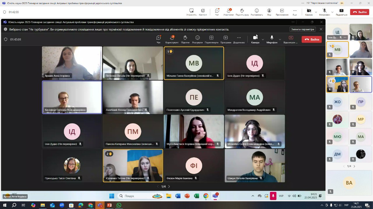Робота секції «Актуальні проблеми трансформації українського суспільства» ХV Міжнародної науково-практичної конференції «Юність науки – 2025»