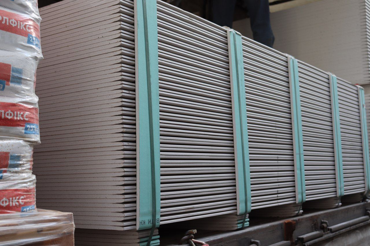 - – Гіпсокартон звичайний Knauf – (2500×1200х12,5 мм 3 кв. м) 1667 листів (загальна кількість кв.м повинна бути 5000кв.м)
