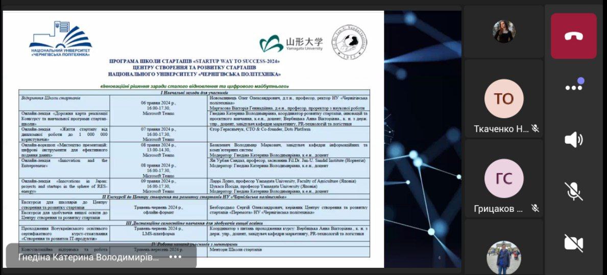 Координатор розвитку стартапів, інновацій та проєктного навчання НУ «Чернігівська політехніка», к.е.н., доцент Катерина Гнедіна звернулася до учасників з вітальним словом, підкресливши, що Центр створення та розвитку стартапів надає комплексну підтримку інноваційним проєктам у м. Чернігові, а також презентувала дорожню карту реалізації конкурсу та навчальної програми стартап-школи.