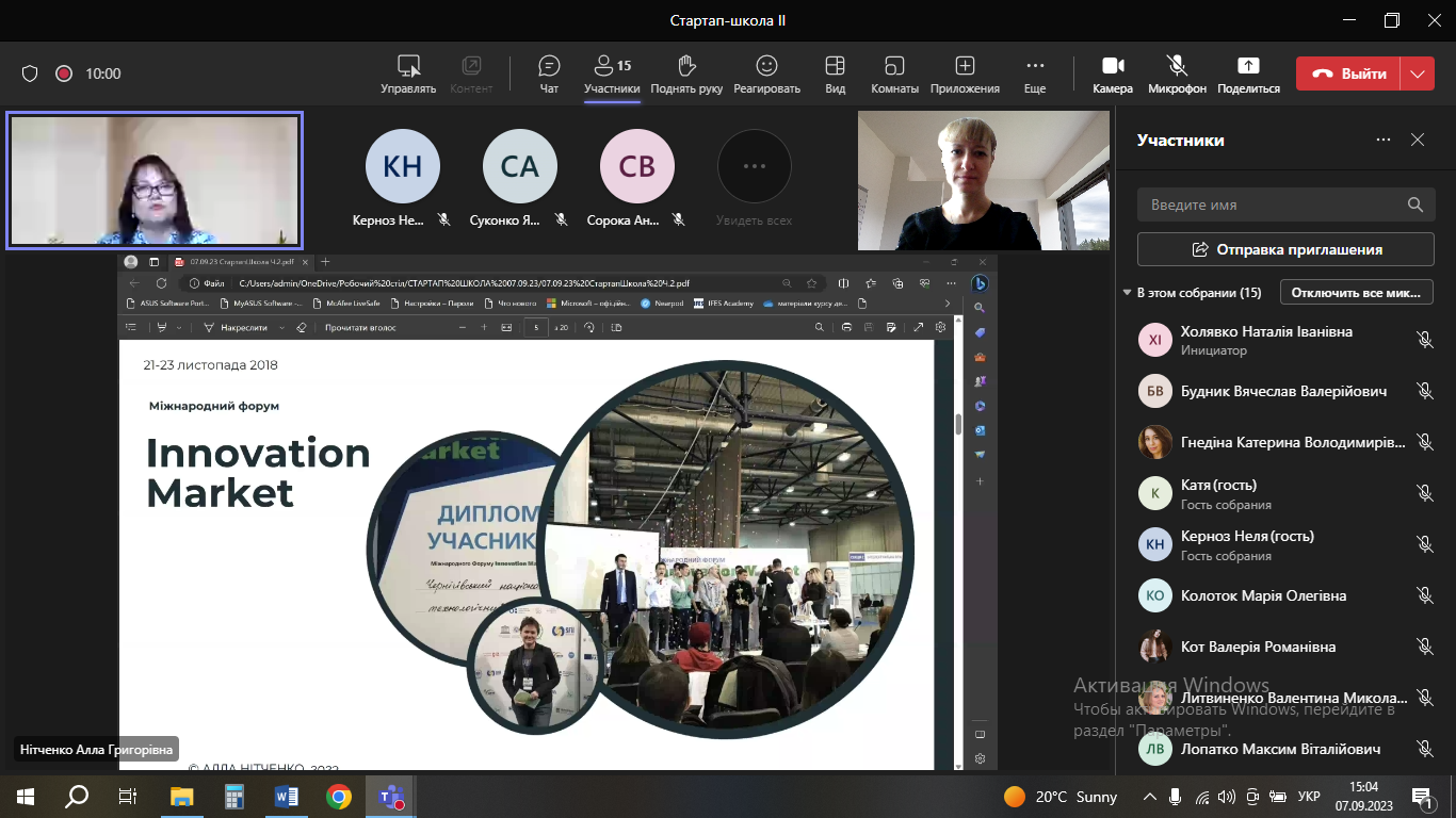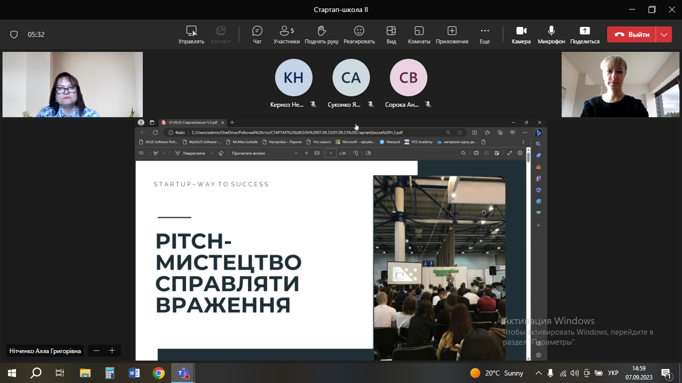 7 і 8 вересня учасники конкурсу взяли участь у майстер-класі «PITCH – мистецтво справляти враження» від Нітченко Алли Григорівни.