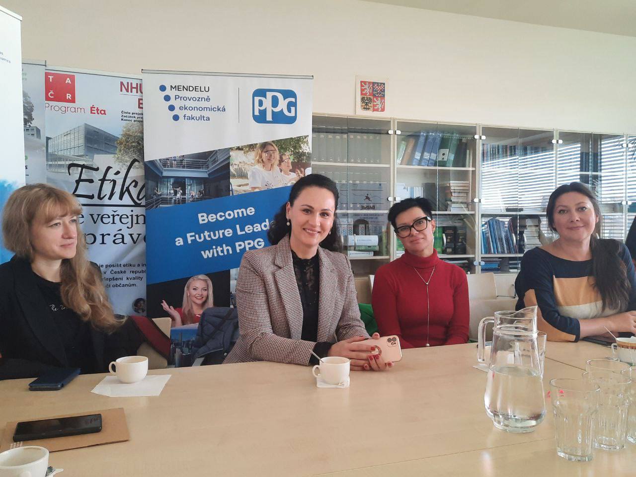 Четвертий день (19 жовтня) виявився насиченим і продуктивним. Науковці з українських закладів вищої освіти мали змогу відвідати дві лекції від координаторів проєкту, д.е.н., проф., директора ННІ менеджменту, харчових технологій та торгівлі НУ «Чернігівська політехніка» Наталії Валеріївни Ткаленко, а також PhD Ондржея Павелека (Університет імені Менделя). Обидва лектори зосередились на проблематиці удосконалення комунікацій в академічному середовищі. Спеціально для учасників стажування було організовано зустріч із деканом факультету бізнесу та економіки Університету, PhD, доц. Сватоплуком Капунеком. У межах цієї зустрічі обговорювалися можливі напрями чесько-української науково-освітньої співпраці. Під час зустрічі з PhD, директором CZEXPATS з науки Матушем Гланцем розгорнулась конструктивна дискусія, присвячена визначенню потенційних засобів підтримки українських дослідників в умовах воєнного стану.
