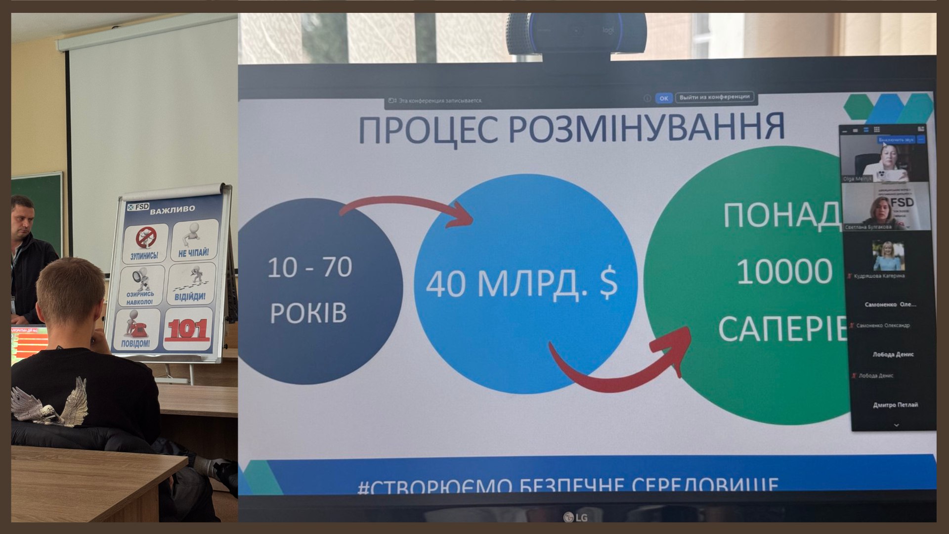 Під час зустрічі представники ФСД розповіли про діяльність фонду, спрямовану на зменшення кількості нещасних випадків, пов’язаних із неправильним поводженням із ВНП, та поділилися практичними рекомендаціями щодо дій у разі виявлення підозрілих предметів.