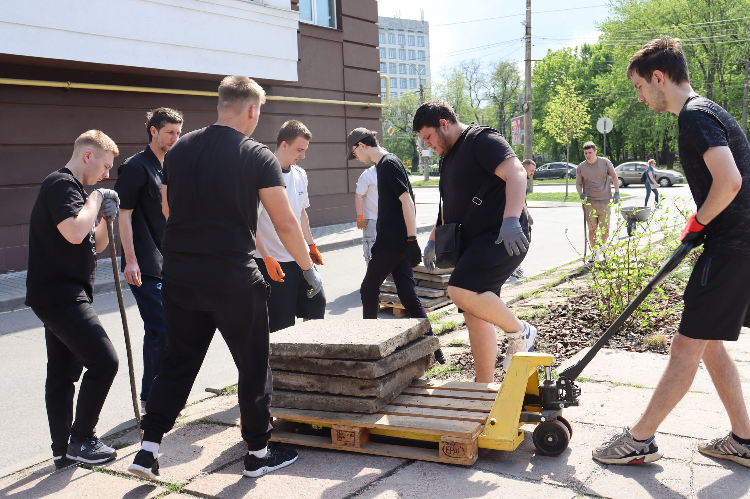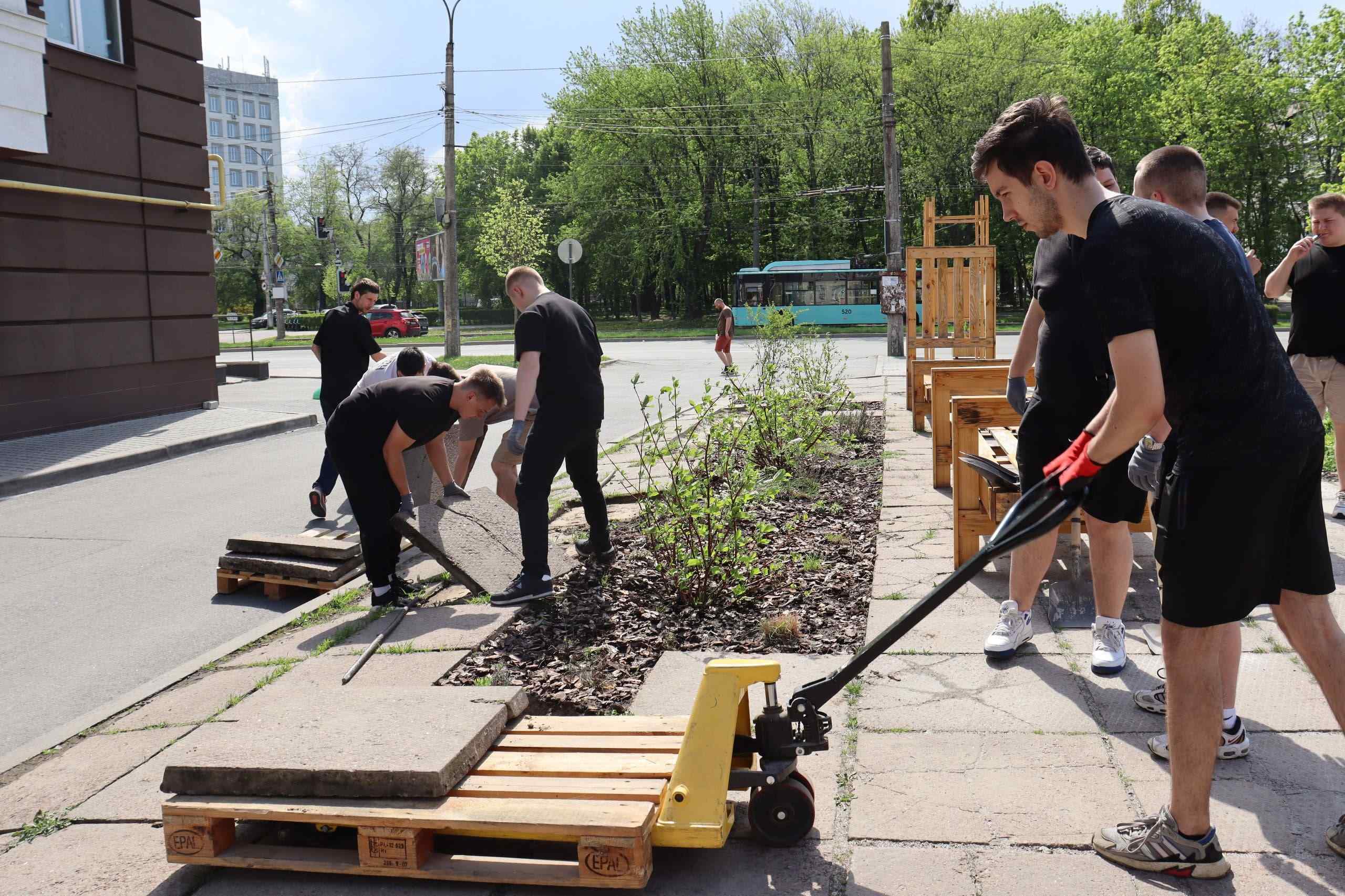 Протягом кількох годин учасники прибирали територію навколо центру, впорядковували зелені зони, збирали сміття та допомагали у облаштуванні простору.