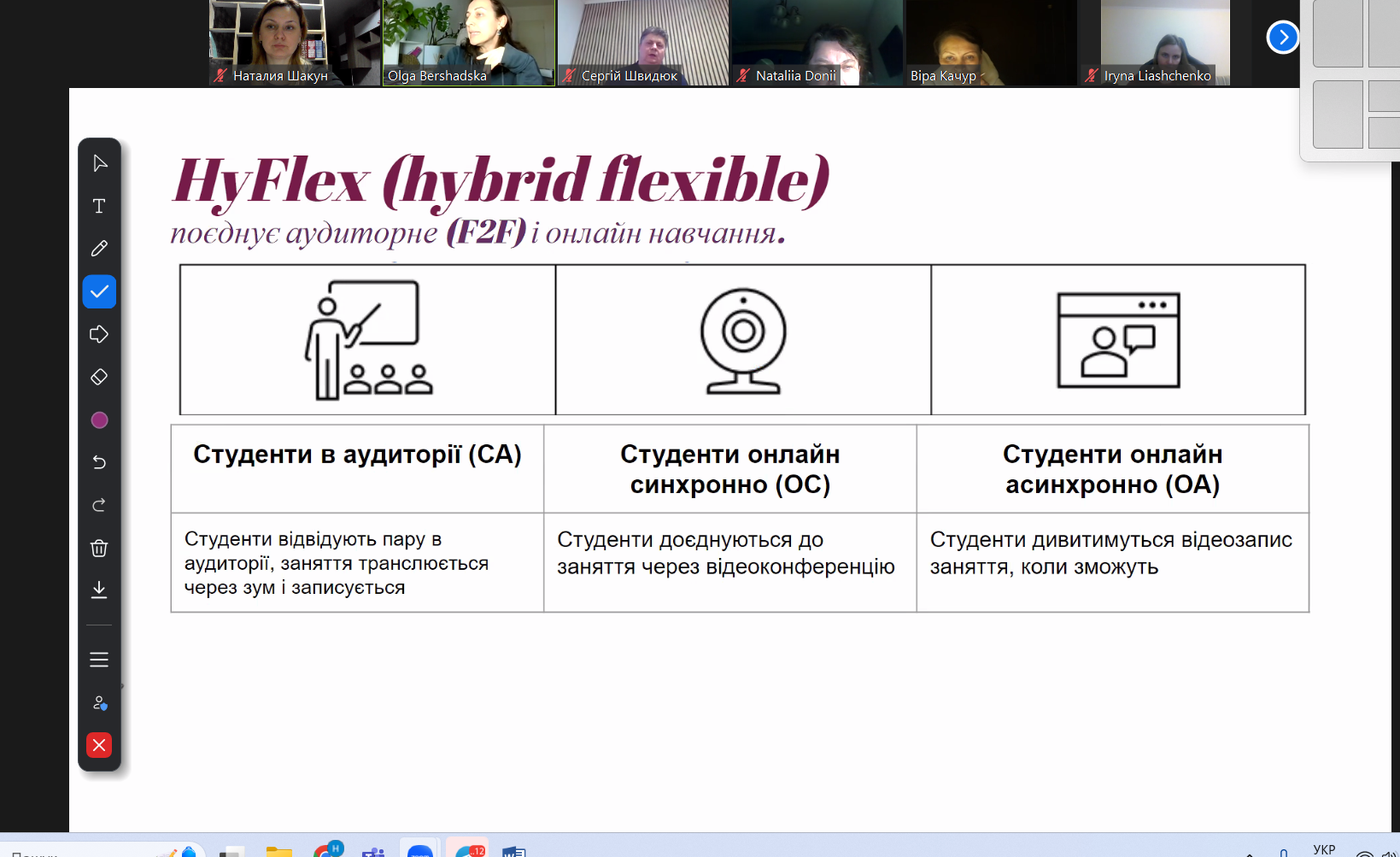 Учасники тренінгу – викладачі з Києва, Чернігова, Харкова, Дніпра, Львова та інших міст України – опановували методики гібридного навчання. Йшлося про поєднання освітніх активностей у трьох різних модальностях: наживо, в онлайні та асинхронному форматі.