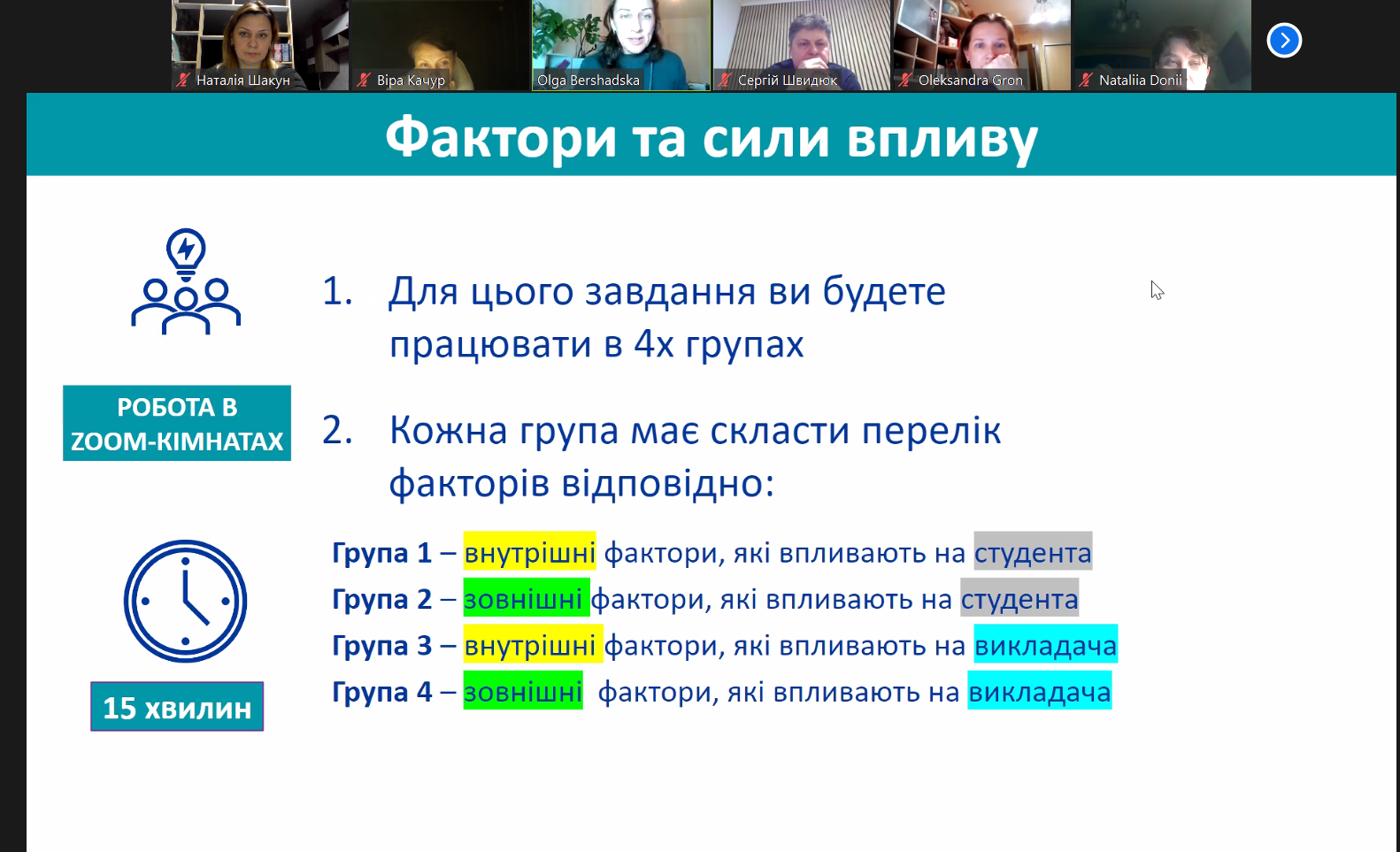 - визначали критерії оцінювання роботи студентів.