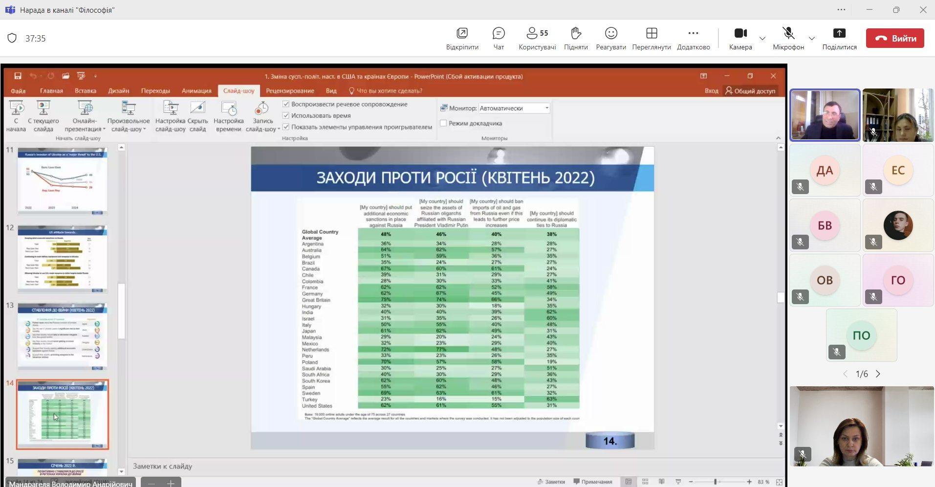 20 листопада відбулась публічна лекція професора кафедри філософії і суспільних наук д.ф.н, проф. Володимира Андрійовича Мандрагелі на тему “Зміна суспільно-політичних настроїв в США та країнах Європи внаслідок російсько-української війни”.