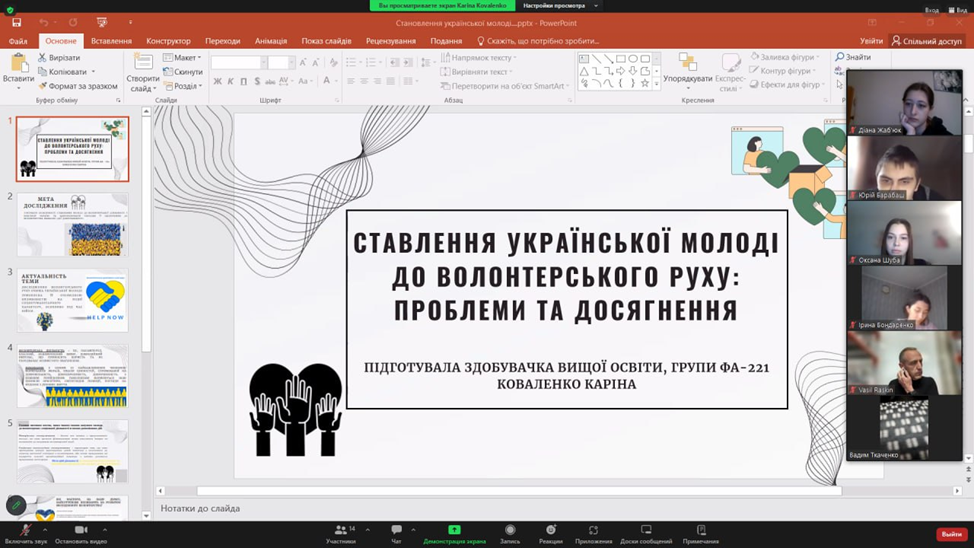 Тиждень розпочався із засідання філософської секції наукового гуртка «Аналітичний простір» (модератор доц. С.В. Киселиця) на якому свої наукові студії представили здобувачі вищої освіти бакалаврату й аспірантури: «Ставлення української молоді до волонтерської діяльності: проблеми і досягнення» (Каріна Коваленко), «DevOps and Philosophy» (Євген Патлань), «Світоглядний двобій Давида і Голіафа» (Василь Раскін) викликали щирий інтерес і жваву дискусію. У кращих традиціях вільнодумства й демократичного полілогу присутні змогли в черговий раз переконатися, що Філософія об’єднує!