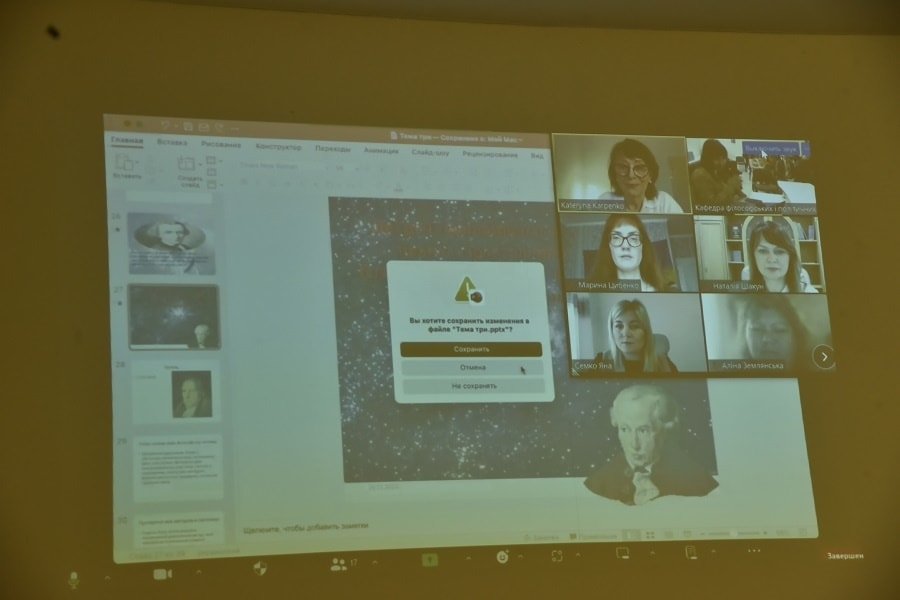 Не менш насиченим на цікаві заходи був і четвертий день Тижня філософії. Цього дня викладачі та здобувачі вищої освіти першого та другого курсу, які навчаються за спеціальністю “Філософія”, освітня програма “Аналітика суспільно-політичних процесів”, брали участь у всеукраїнських заходах, організованих ЗВО-партнерами. Так, завідувач кафедри філософії і суспільних наук Наталія Шакун виступила з доповіддю “Мудрість як підстава співбуття” на X Філософському Форумі «Філософія: філія до мудрості єднає світ і Україну», ініційованому кафедрою філософських і політичних наук Черкаського державного технологічного університету. Форум об’єднав науковців та здобувачів освіти з Черкас, Харкова, Одеси, Львова, Києва та спонукав до традиційної інтелектуальної комунікації, обміну ідеями, пошуку нових, відкрив нові простори для філософської думки і слова.