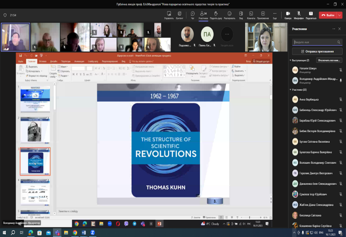 Професор розкрив зміст поняття парадигма, проаналізував концепцію зміни парадигми Т.Куна та охарактеризував основні тенденції сучасної парадигми освітнього лідерства. Подія об’єднала студентів та викладачів різних спеціальностей від «Філософії» (ОП «Аналітика суспільно-політичних процесів») і «Соціальної роботи» до «Економіки» і «Будівництва та цивільної інженерії», викликала щирий інтерес і жваву дискусію у всіх присутніх.