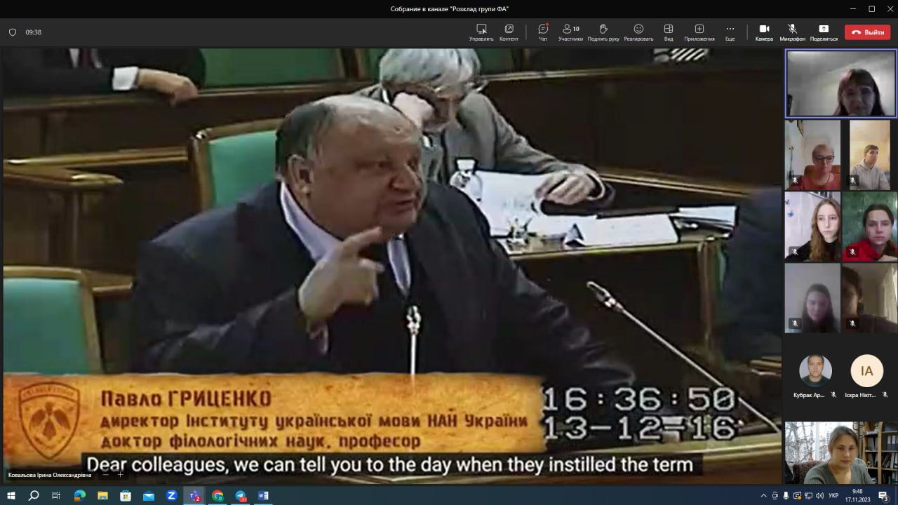 Фінальний день тижня філософії був багатий на події. Розпочався він з перегляду та обговорення документальної стрічки «Соловей співає. Доки голос має» (2019), яка є чи не найсильнішим фільмом про мову. Модерувала захід к.ф.н., доц. І.О. Ковальова. Долучилися до перегляду й обговорення фільму здобувачі вищої освіти спеціальності «Філософія» та викладачі кафедри філософії і суспільних наук.