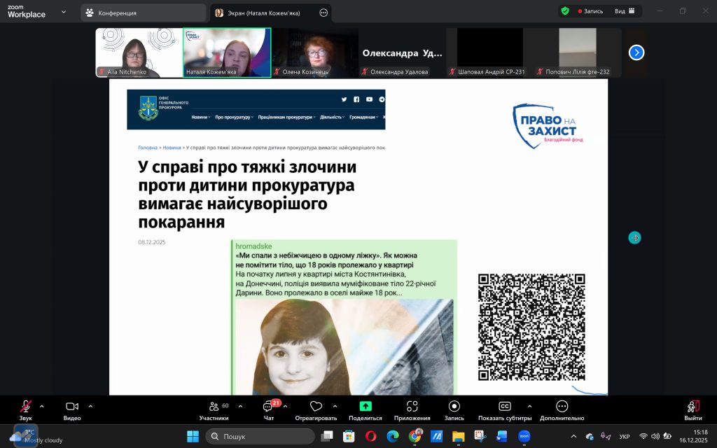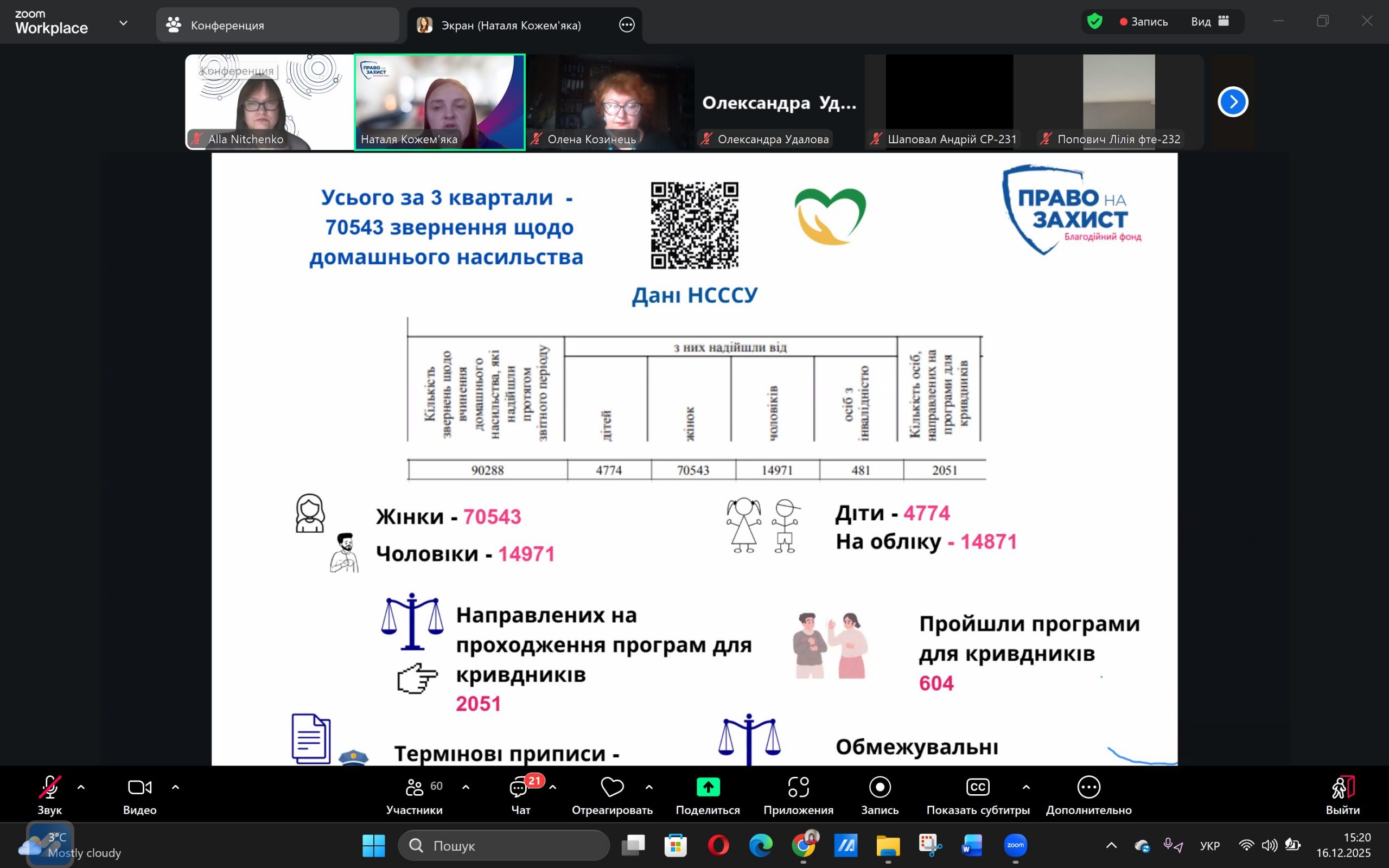 16 грудня 2025 року для здобувачів вищої освіти Національного університету «Чернігівська політехніка» відбувся інформаційний захід на тему «ГЕНДЕРНО ЗУМОВЛЕНЕ НАСИЛЬСТВО: ВИКЛИКИ ТА РІШЕННЯ ДЛЯ РЕАГУВАННЯ І ПРОТИДІЇ».