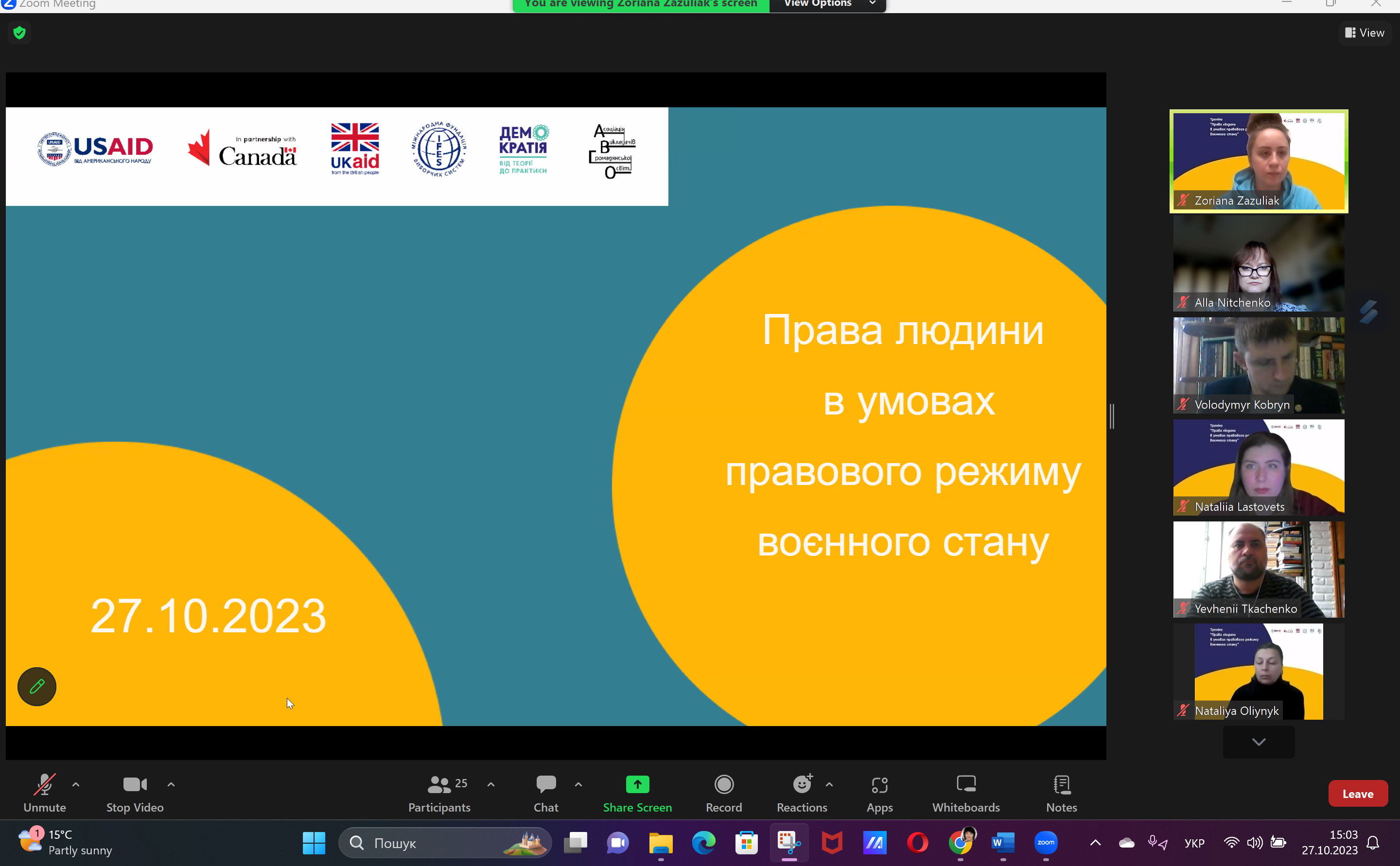 Участь у тренінгу «Права людини в умовах правового режиму воєнного стану»
