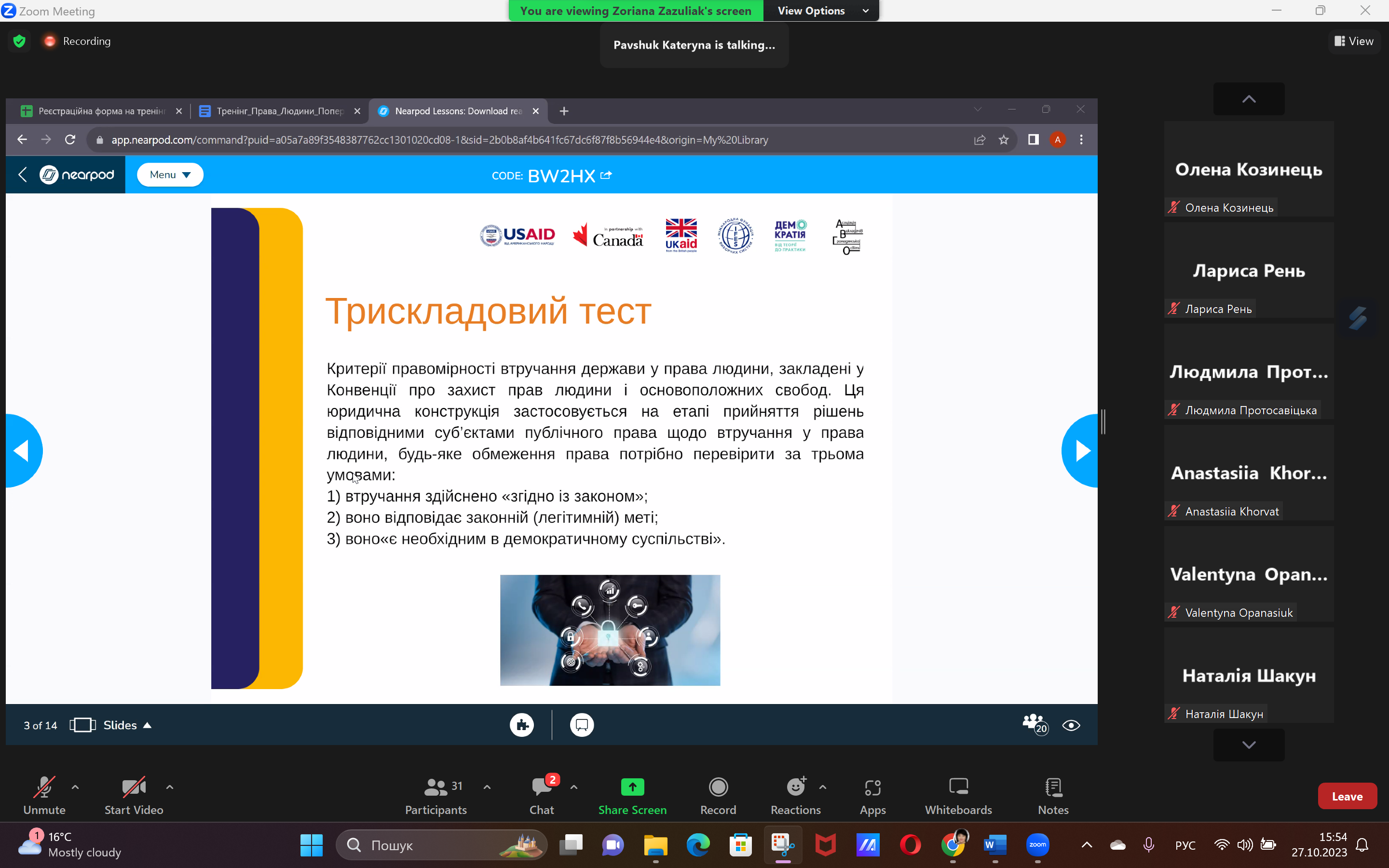 Тренінг відбувся 27/10/2023 та був спрямований на деталізування розуміння прав людини в контексті воєнного стану.